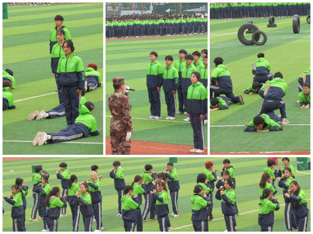 古人说,“天将降大任于斯人也,必将苦其心志,劳其筋骨”。队列练习,匍匐前进,战地医疗包扎,军体拳,手语操每一项训练都不容易。纵使汗如雨下,仍稳如泰山,坚毅不拔。随后,进行了精彩的军体拳、擒敌拳、格斗、手语操等表演。军体拳整齐划一、精神抖擞;擒敌拳斗志昂扬,势如霹雳;手语操气势恢宏、意气风发。“强国有我”四个大字映入眼帘,嘹亮的口号直冲云霄。爱国是每一个中国人的责任与担当,参加军训,接受国防教育正是大学生爱国的一种表现。