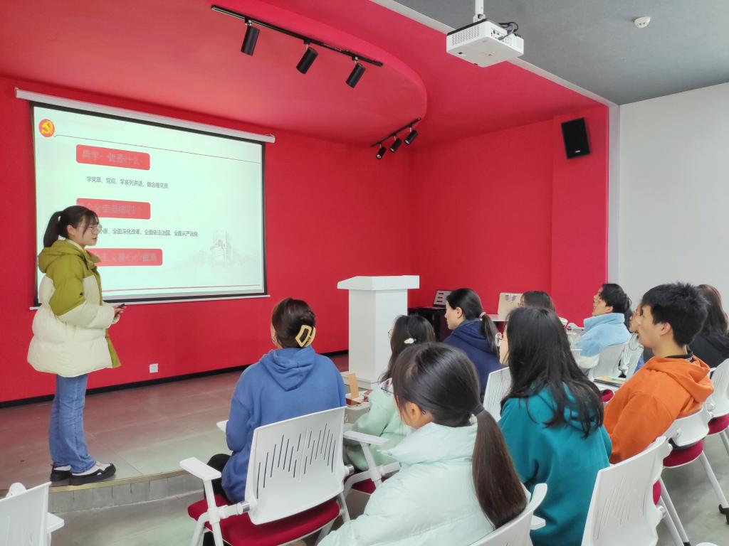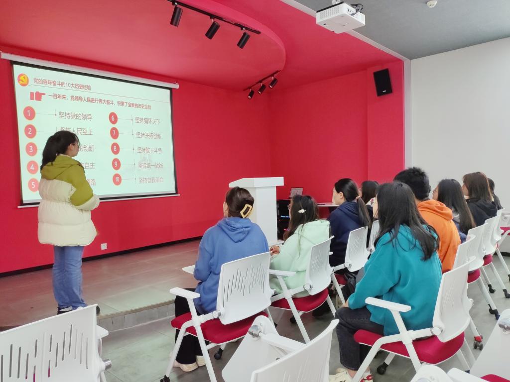 百年初心成大道,万里征程作雄行。百年党史生动记录着中国共产党的奋斗足迹与辉煌成就,是共产党人宝贵的精神财富,蕴含着丰富的政治营养和智慧力量。首先傅莉学姐讲解了党百年奋斗的重大成就与历史经验。一百年来,党领导人民进行伟大奋斗,在进取中突破,与挫折中奋起,从总结中提高,累积了宝贵的历史经验。其次傅莉学姐讲述了党百年奋斗的五大历史意义。这些都启示青年团干部们要坚定历史自信、汲取历史智慧,牢记青年一代要有担当、讲实干、用创新,牢记青春使命、在新时代的建设中,绽放绚丽的花朵,奏响新时代的乐章。