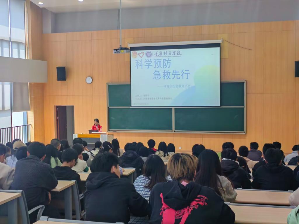 人的生命是宝贵的。为了让同学们能在体育运动以及日常学习生活中面对意外伤害或突发事件时运用相关创伤急救技巧,提高互救自救能力,提升安全健康意识。大健康管理学院青年志愿者协会于2023年3月14日中午12:30在玉棠书院阶梯教室开展了“科学预防·急救先行”——体育创伤急救宣讲会,共计150名同学参与。本次宣讲会由大健康管理学院青年志愿者协会干事马郡芩进行讲解。