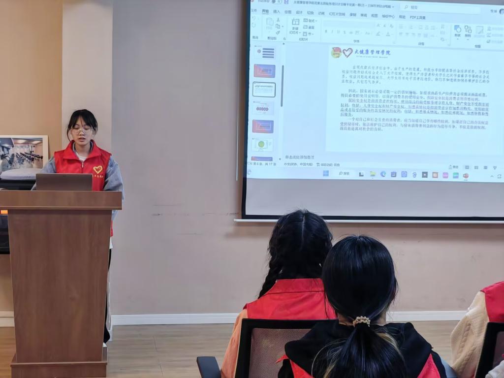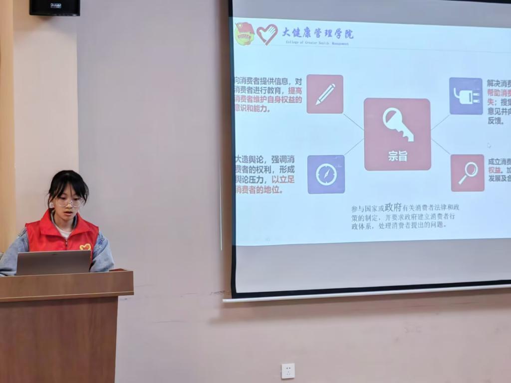 宣传消费者权益,保护消费者权力。面对层出不穷的陷阱,常有一些鲜活事例告诉大学生们,警惕兼职,谨防学生受骗。为进一步推动大健康管理学院志愿服务的发展,推动志愿工作的建设,促进志愿服务精神的发扬。大健康管理学院青年志愿者协会于2023年3月15号,线下开展了“花果”志愿服务培训计划第一期。本次活动由大健康管理学院青年志愿者协会实践部干事倪熔为大家讲解消费者权益日的相关信息,带大家了解国际消费者权益日,让大学生们学会如何维护自己的合法权益。