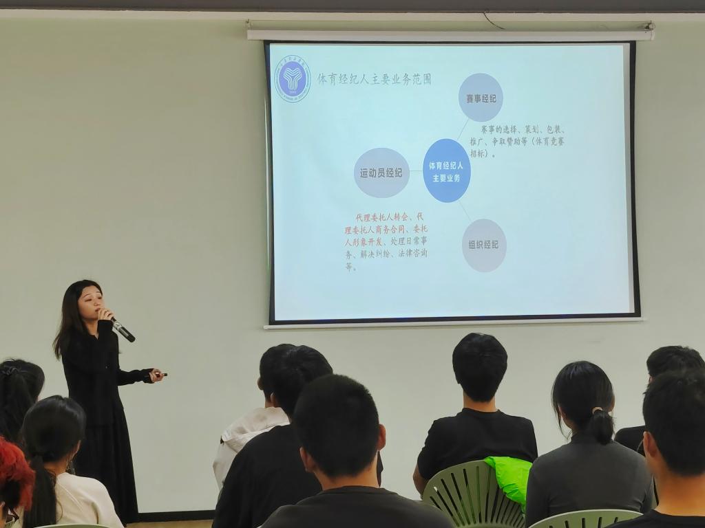 为让大健康管理学院的学生深刻了解体育经济与管理这个专业,丰富学生的课外专业培训,扎实学生对专业的认知,提升专业素养,为未来的发展提供相关指导和帮助,特此在3月17日下午3点横山书院知物·多功能活动室开展体育经纪人成长计划第一期活动。此次活动邀请了姜晴秋老师以及汤宪美老师为同学们解疑答惑。