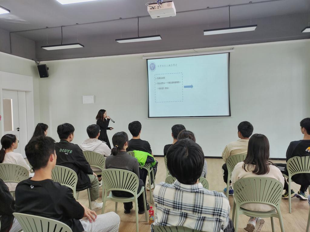 在培训开始之前汤宪美老师的一段自我介绍赢得了同学们的一致好评,同学们纷纷投出了崇拜的眼光。针对于同学们崇拜汤宪美老师的丰富经历,所以姜晴秋老师也对同学们提升自我也提出了几点意见。她希望同学们花时间去了解体育经纪人,也可以报考体育经纪人的证件;再就是建议同学们报考相关的一个建议:报考教师资格证和英语四级以及普通话的一个证,这些对以后同学们的一个发展起到了一定的作用。