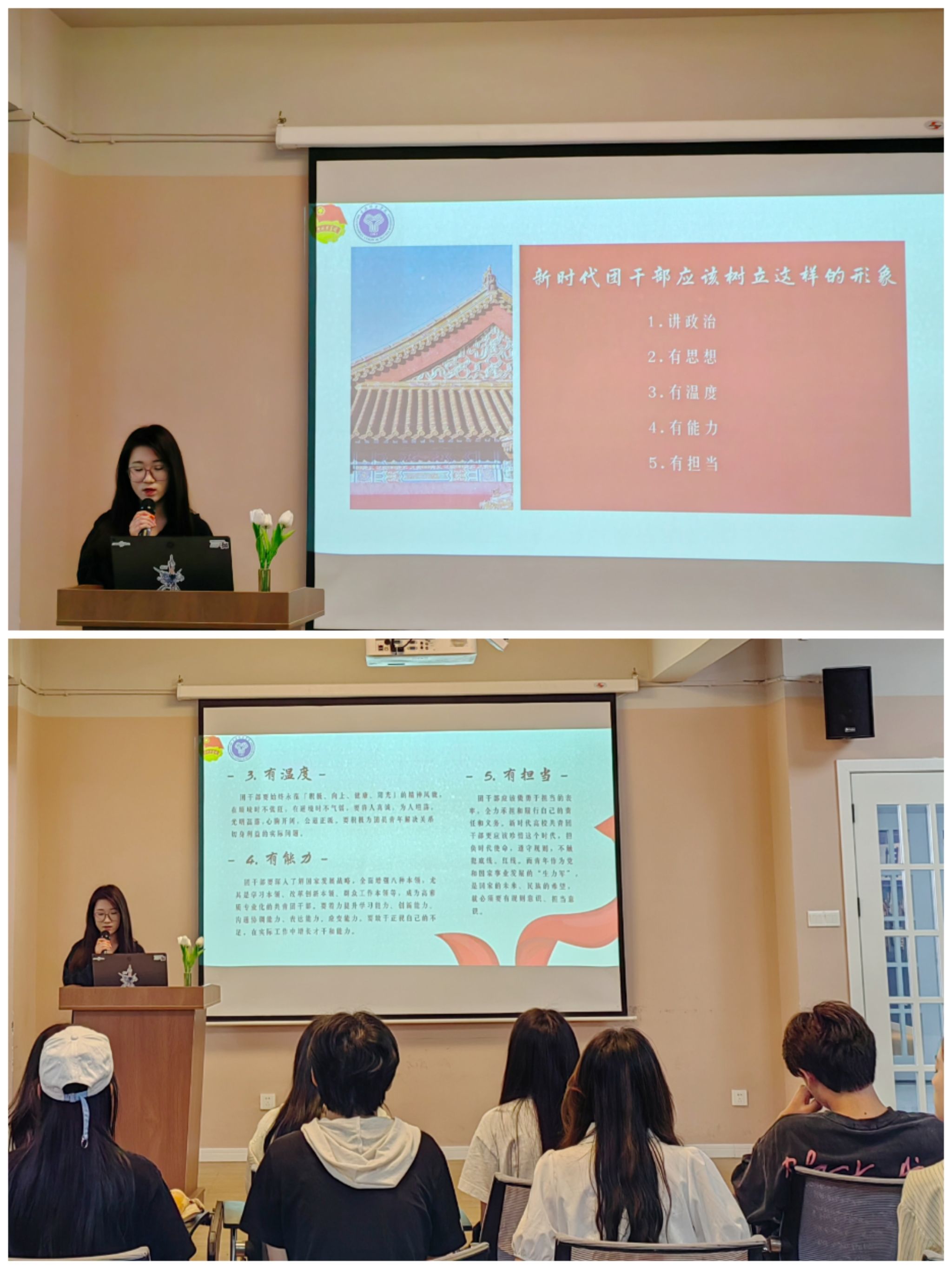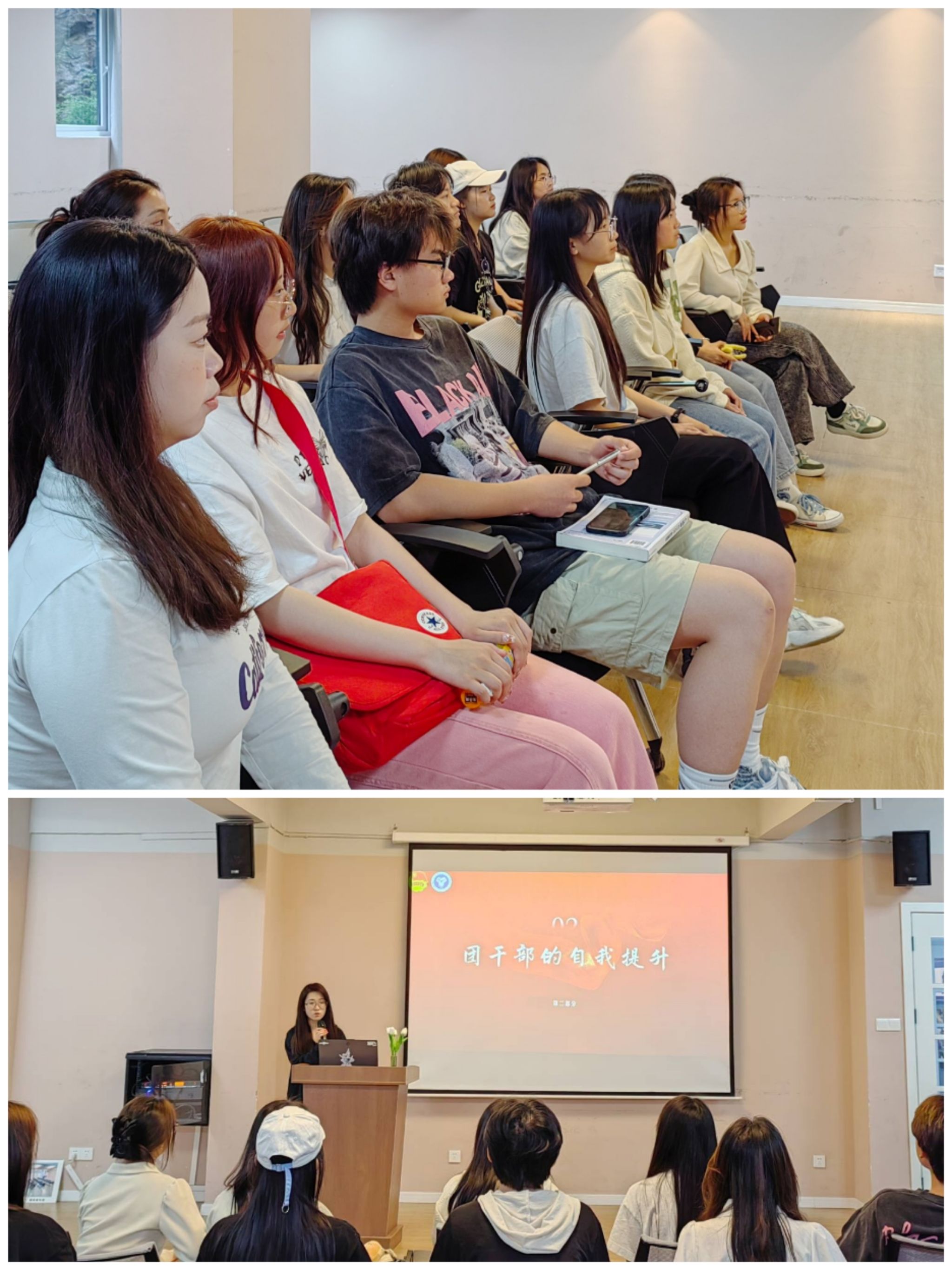 “人生的成长,始于自我觉醒;人生的进步,就在于自我改变。”为了青年团干部们能有效塑造自身形象和提升自我能力,让团干部们在学习理论知识和实践的过程中有所悟、有所得。大健康管理学院于4月3日在綦河三号楼小石潭·多功能活动室举办了“团干部形象塑造与自我提升的有效途径”第七期的团干部培训会。此次培训会邀请到了团委组织部的部长刘雨雯为大家讲解青年团干部的形象塑造方法以及一些自我提升的有效途径。
