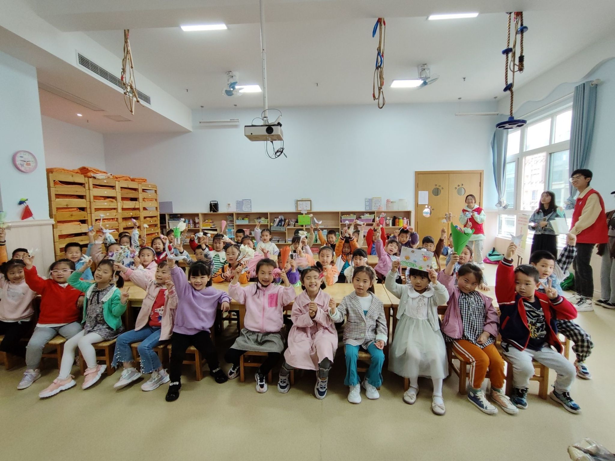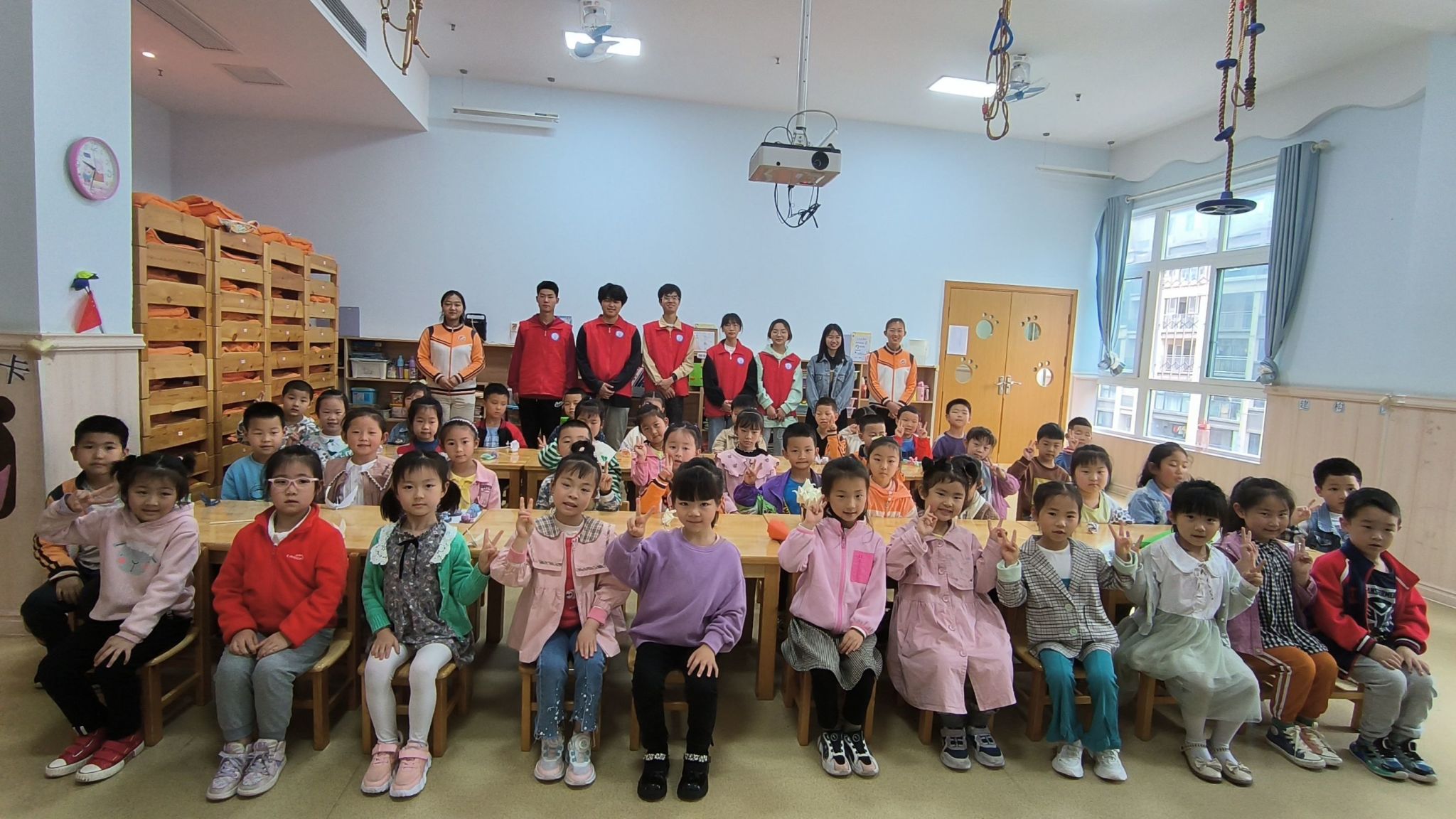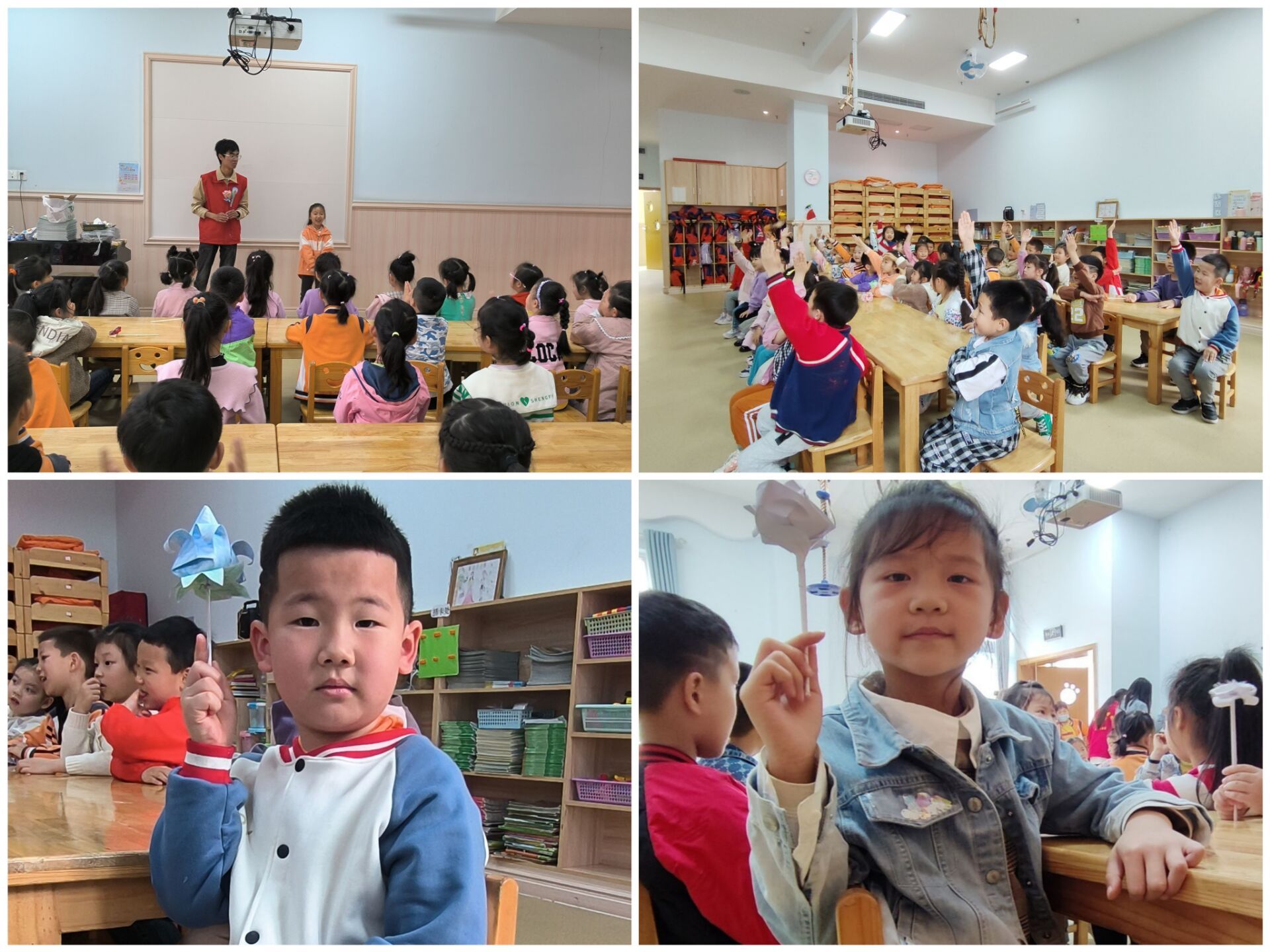 在慧凡贝乐幼儿园,志愿者们首先进行了自我介绍,并进行一系列趣味游戏,将手工作品作为奖励鼓励小朋友们积极参与。在整个活动过程当中,志愿者们采取趣味表达一下子拉近了和小朋友们的距离,也都非常配合志愿者和老师们,对志愿者为他们带来的手工作品爱不释手。在活动结束后,志愿者和小朋友们一起合照,充满了欢声笑语。