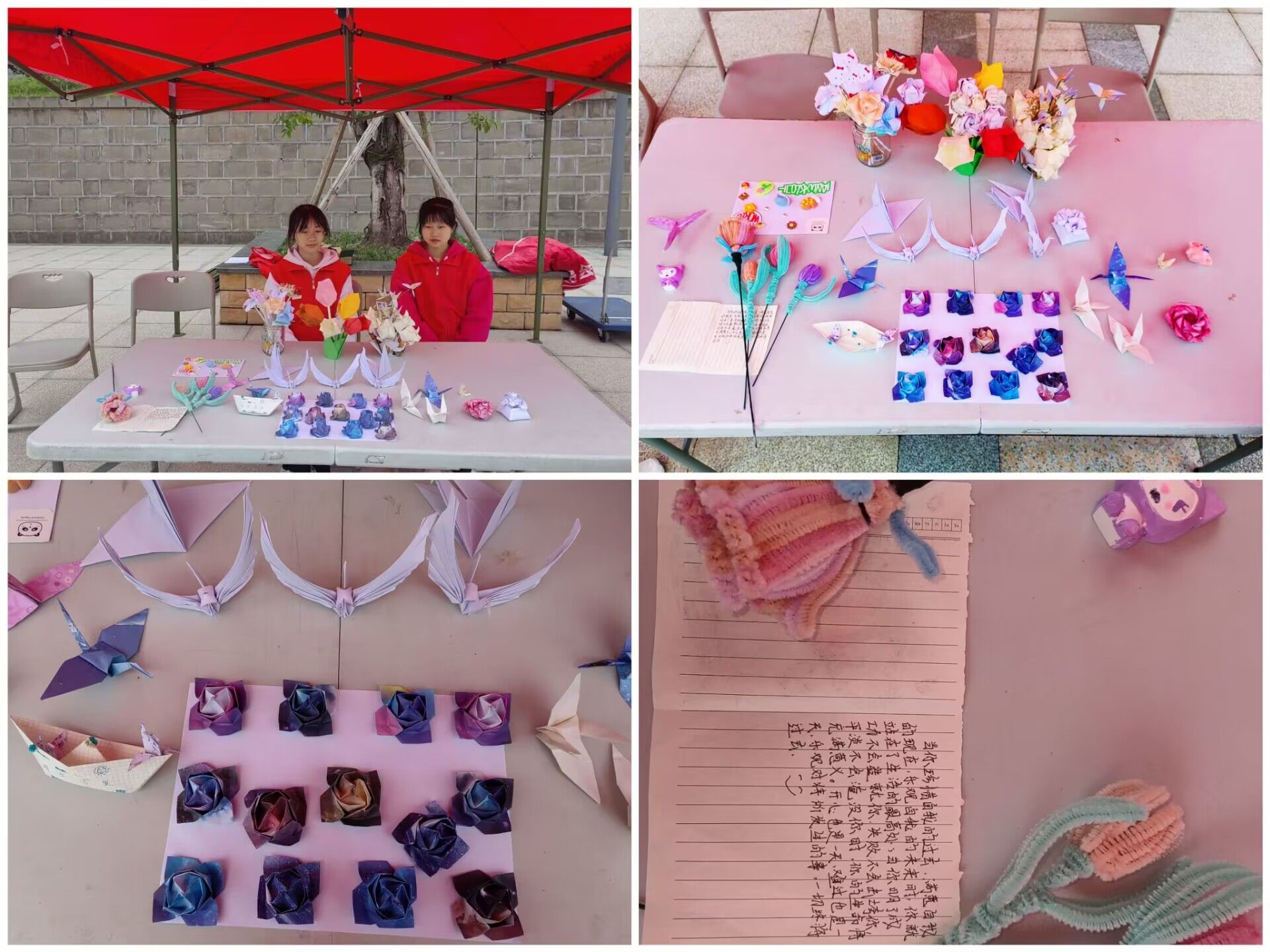 经过前期参与者们积极制作,涌现出许多的精美作品。于4月7日下午14:30在图书馆前广场进行作品展出,志愿者对前往参观作品的同学们进行了详细的讲解,并告诉他们开展此次活动的意义,这些作品是十分精美的,参观的同学们纷纷表示制作者们很用心,在作品中感受到制作者们对孩子们的浓浓真情,使他们也感受到温暖,今后会积极参与志愿服务活动。