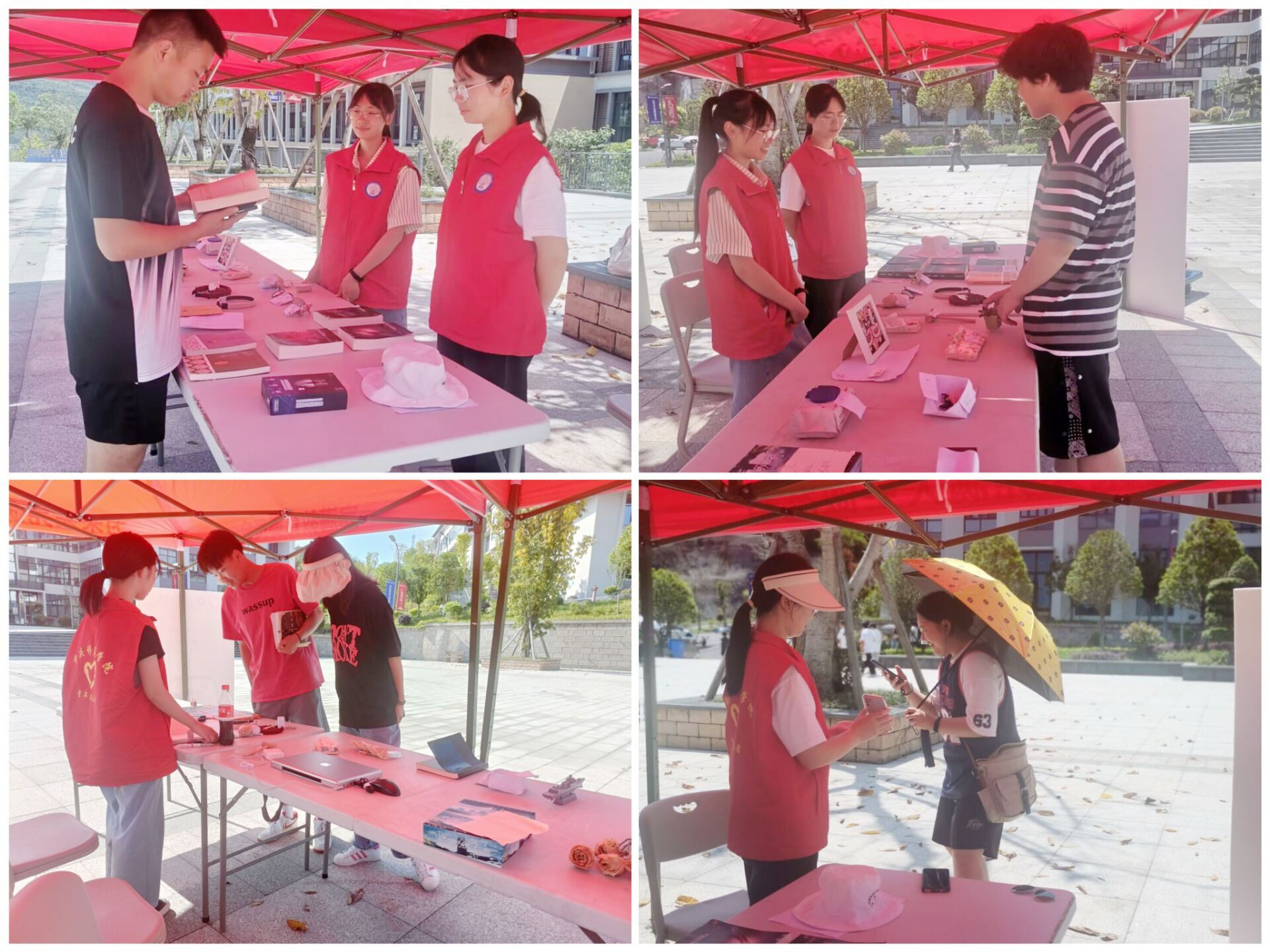 从活动启动以来,参与活动的同学们便早已准备好包括课外书籍,发夹,玩偶,干花等需要进行义卖的物品,并设立合理的价格,及时提交到指定的地点。临近活动开始,志愿者们提前竖立好雨棚和桌子,并将已经设定好价格的物品清理并整齐摆放在桌子上,提前录制好吸引同学们的叫卖声音,雨棚底下温度已经进一步升高,仿佛一瞬间引燃志愿者们的所有热情。可是志愿者们没有退缩,以激情昂扬的姿态迎接活动正式开始。