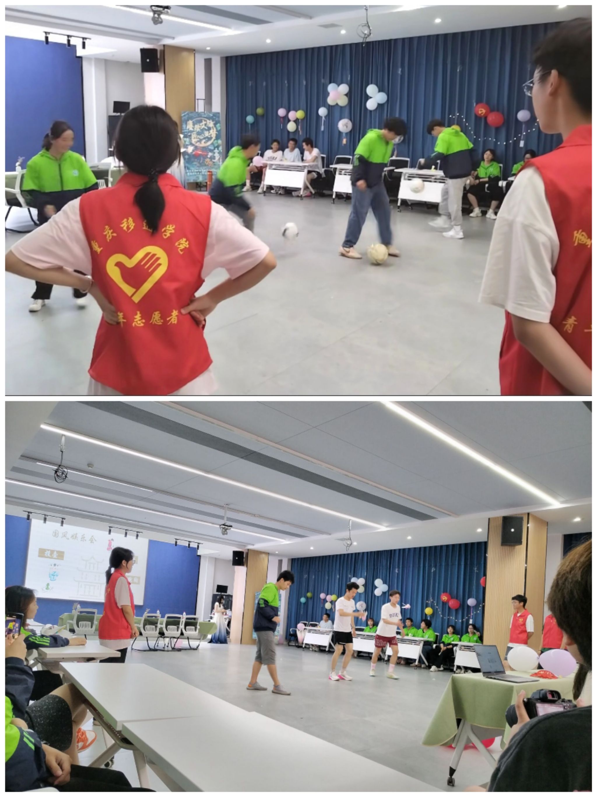 在友谊赛结束之后,便进入到最后一个运动环节——蹴鞠。蹴鞠是最考验灵活性的运动之一,它包括思维判断的灵活性和腿部运转的灵活性。在此次活动中由支队志愿者们进行简单的颠球教学示范后,便组织参与者们采取颠球的方式来进行蹴鞠游戏的简单体验。在此过程中,支队志愿者们再一次充当裁判的角色,通过计数参与者在时间范围内的颠球个数来评选获奖人员。
