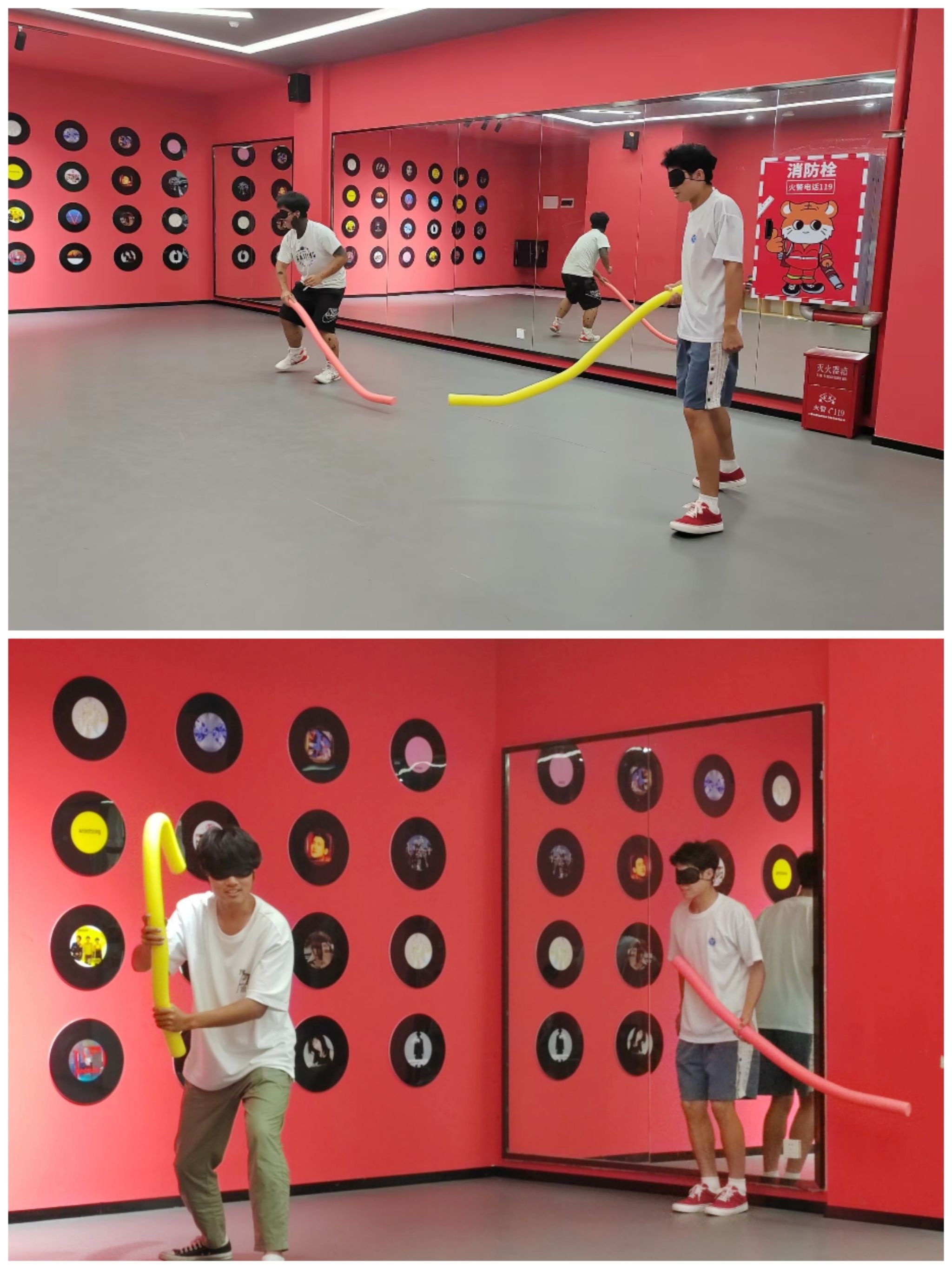 活动过程中,同学们都会被蒙上眼睛,仅靠听觉和感觉来决定出招和攻击方向。大家都高度保持警惕,因为这既考验“剑客”们的武艺,又考验勇气及智慧。在这次比赛中,每位同学都充分展示自己的优势,有的听力敏觉,毫不费力躲掉每次进攻;有的步步为营,击中对方躯干或四肢,一招制胜。旁观的同学更是热血沸腾,恨不得自己能上去替他们比赛。原来影视作品中剑客“十步杀一人,千里不留行”的豪气,是来源于日常生活中艰苦不懈的训练。大家在感叹剑客不易的同时,更是对中华传统文化多了一分痴迷。
