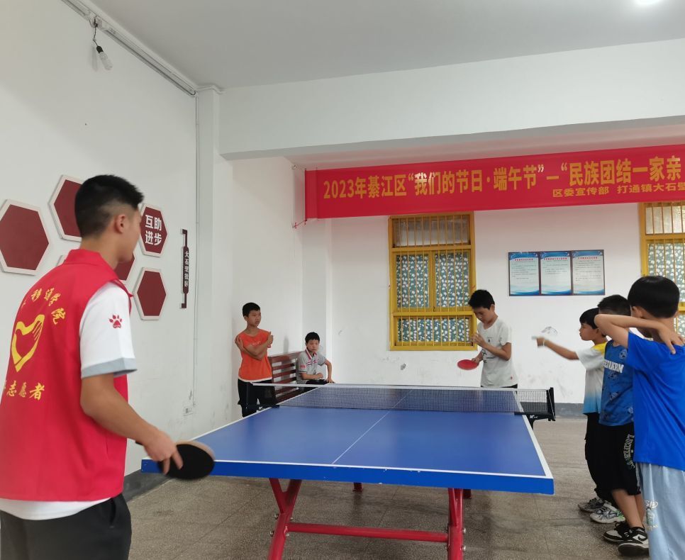 转眼学习课程已然过去,跟随志愿者小哥哥来到乒乓球台,乒乓球给他们带来了欢声笑语。不论是小朋友之间的简单“竞技”,还是和志愿者哥哥的友好切磋,都能激发小朋友们对体育的热情,埋下了体育兴趣的种子,开启了锻炼身体的有机旅程,我们相信终有一天能够结出“健硕”的果实。