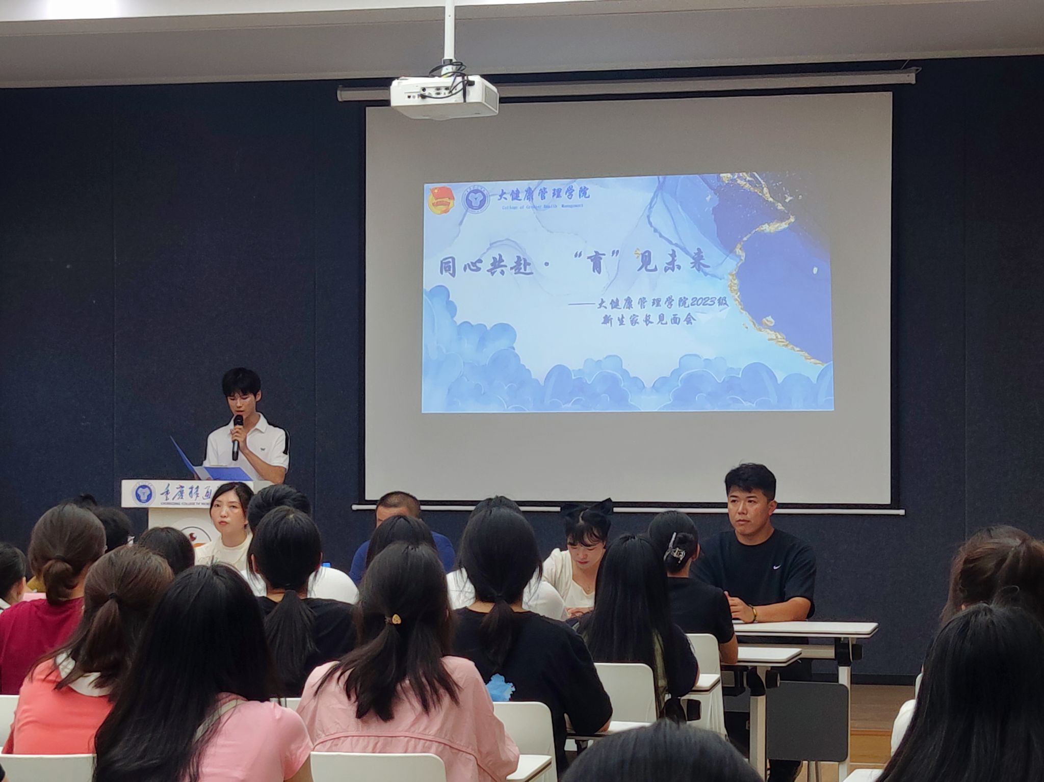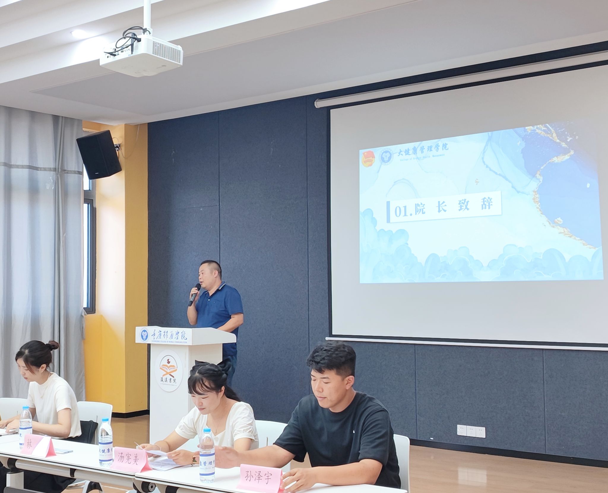 九月的风,带来的不只是秋天的气息,还带了大健康管理学院23级新生。为进一步加强学校与家庭,教师与家长之间的密切联系,帮助大学生迈好大学生活的第一步,大健康管理学院于9月2日16:30在瀛溪书院回声报告厅举办2023级新生家长见面会,大健康管理学院院长林毅博士、教学秘书彭丽珺老师、专职教师姜晴秋老师、专职教师汤宪美老师及2023级新生辅导员孙泽宇老师出席本次见面会,会议由班导师夏华尧主持。