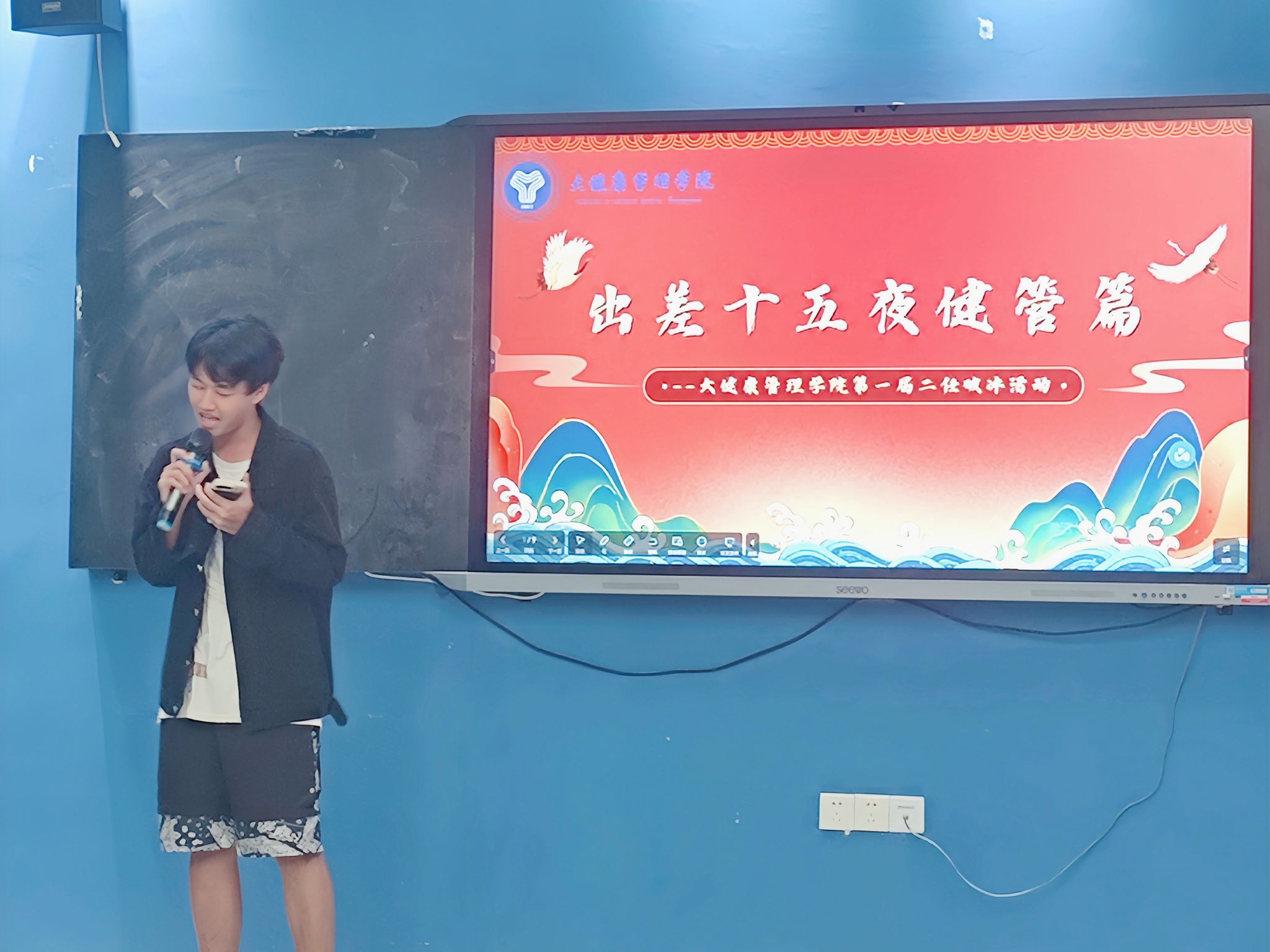 湖畔清风褪夏色,静雅秋意漫枝头,享受过了夏日的热烈骄阳,迎来了雨后微凉的秋,怀揣着梦想的我们相遇健管,为促进同学之间的沟通交流,加快新进干事的职责转换,加深部门之间对彼此了解,培养相互的默契,推动大健康管理学院学生组织的建设。大健康管理学院于2023年9月24日晚上19:00在綦河书院2号楼智慧教室举行出“差十五夜·健管篇”—大健康管理学院一届二任学生组织破冰活动。