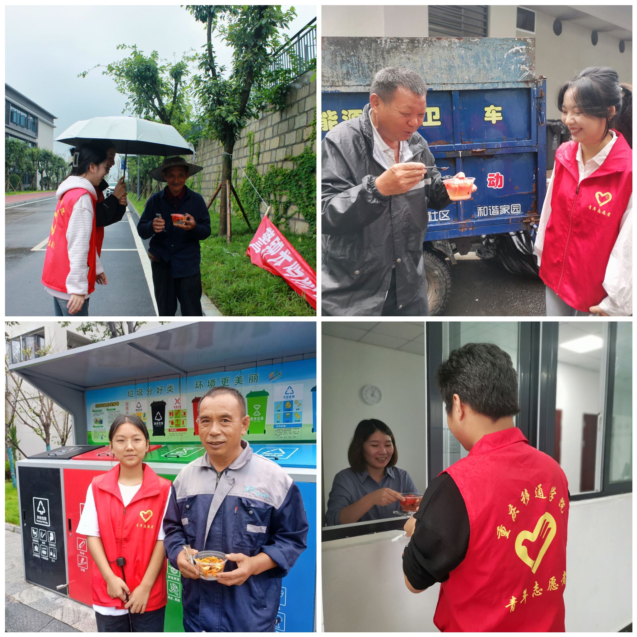 秋意盎然,在这个金秋时节,志愿者们将目光聚焦于在背后付出的校园工作者们,为了感谢他们的辛苦的付出,大健康管理学院青年志愿者协会于2023年9月24日14:00-16:00在玉棠书院半糖煮艺烘焙坊举办了“烹然心动·当然有我”暖心美食制作志愿服务活动,志愿者们齐聚于此为叔叔阿姨们制作了水果冰粉和酱香饼,带给了他们温暖和喜悦,也促进新入学的学子们更好的融入大健康管理学院这个大家庭之中。