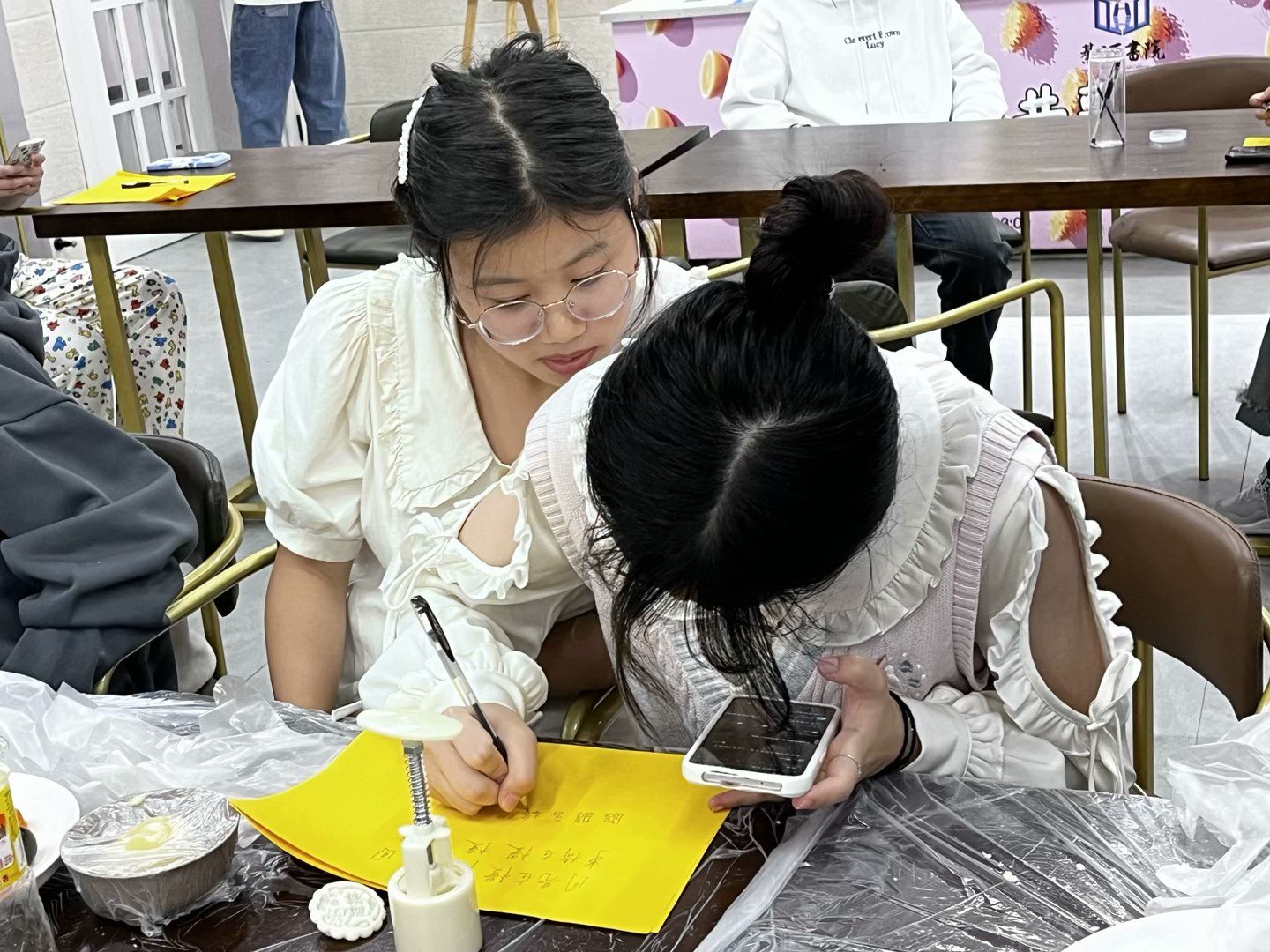 “今夜月明人尽望,不知秋思落谁家”为寄情丝。第三环节“佳节感恩送祝福”同学们在贺纸上写下心中情绪,也写下一句句祝福的话语。祝福话语跃出纸张,传达感恩祝福之情,留下了对于中秋的美丽愿景。让中秋更有情,让心中更有爱。遥寄思恋,思念无声,但文字有声。淡淡黄色纸张,留下了健管学子们的缕缕思念。