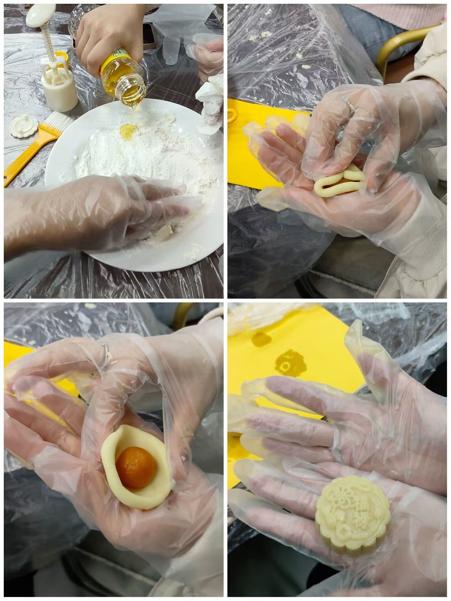好吃的月饼并不难获得,自己做的月饼却是万里挑一。第二环节“中秋月饼圆又圆”,在揉捏、醒面、刷油、制作模型等一系列操作下,烤箱里面的月饼冒出丝丝的香气,一团团的面粉在同学们的巧手下变成美味月饼,自己亲手制作的月饼不仅仅激发了同学们的自豪感,还培养激发了同学们的动手能力和团结合作精神。将刚出炉的月饼进行分袋包装,妥妥的月饼完美变身。大家纷纷品尝自己亲手制作的月饼,享受着这份香甜和美味。