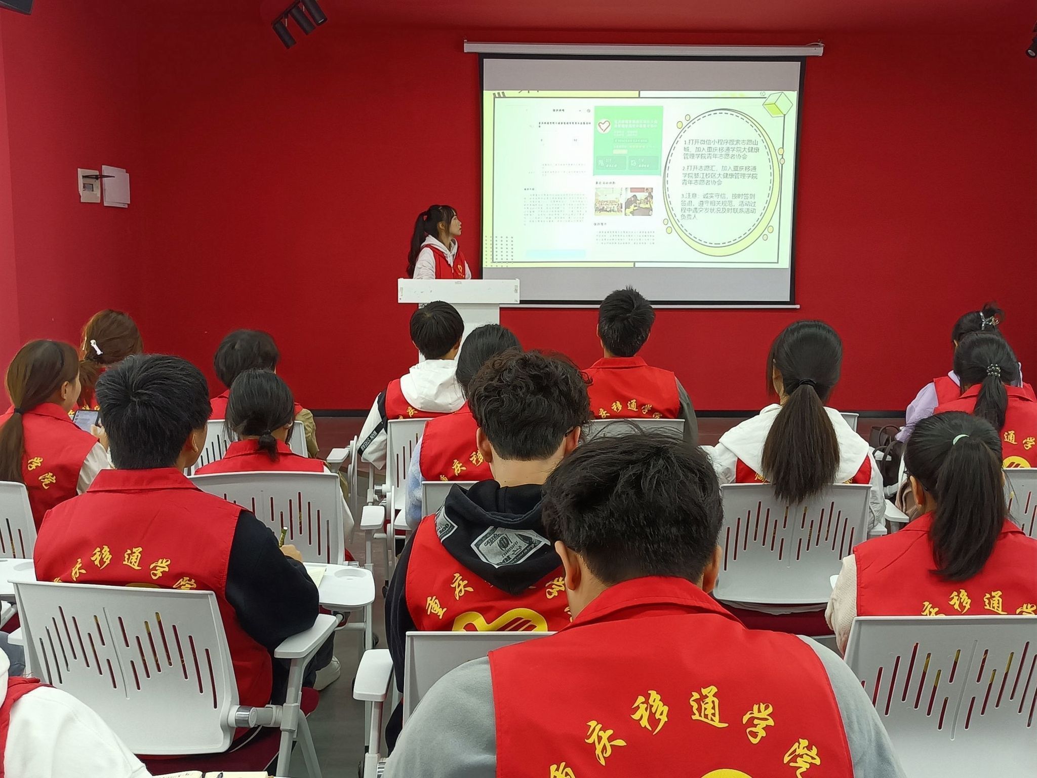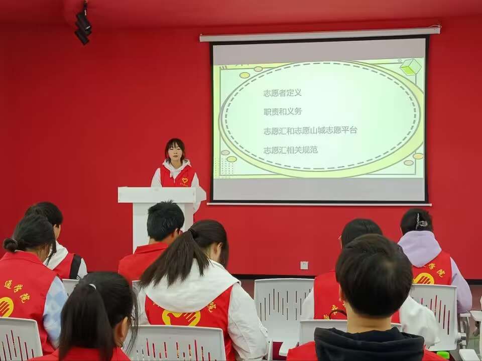 为了促进大健康管理学院志愿者更快融入志愿服务组织,明确志愿者的定义、责任和义务,进一步规范志愿者的行为准则,更好为他人服务,大健康管理学院青年志愿者协会于2023年10月26日12:50在玉棠书院Talk King演讲中心开展 “花果”志愿服务培训计划班第二期,本次培训从“志愿者定义”、“职责与义务”、“志愿汇和志愿山城平台”、“志愿者相关规范”四个方面展开。参与此次培训有大健康管理学院青协干事、“股肱力”体育文化专项服务支队队员、“河小青”青年志愿服务专项支队队员以及2023级各班团。