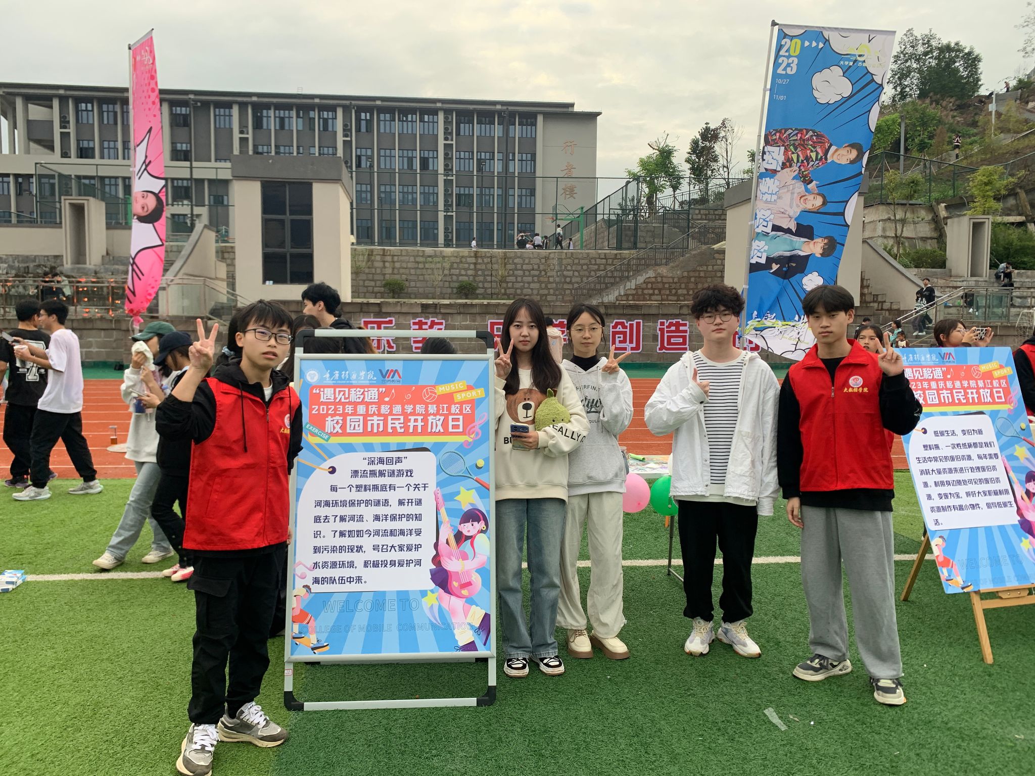 “十月金秋日,乐起移通时”伴随着“2023古剑山•市民开放日”的来临,作为大健康管理学院的一份子,河小青于2023年10月28日16:00-19:30在校操场举办了“聆听深海之语·回流自然之音”的志愿服务,本次活动为助力2023年10月重庆移通学院綦江校区校园市民开放日,打造开放式、体验式、公益式外围活动,发挥公益、朋辈等引领作用;“河小青”青年志愿服务专项支队贯彻“天地与我并生,而万物与我为一,没有地球的健康,就没有人类的健康”的理念,积极开展本次特色海洋主题活动。