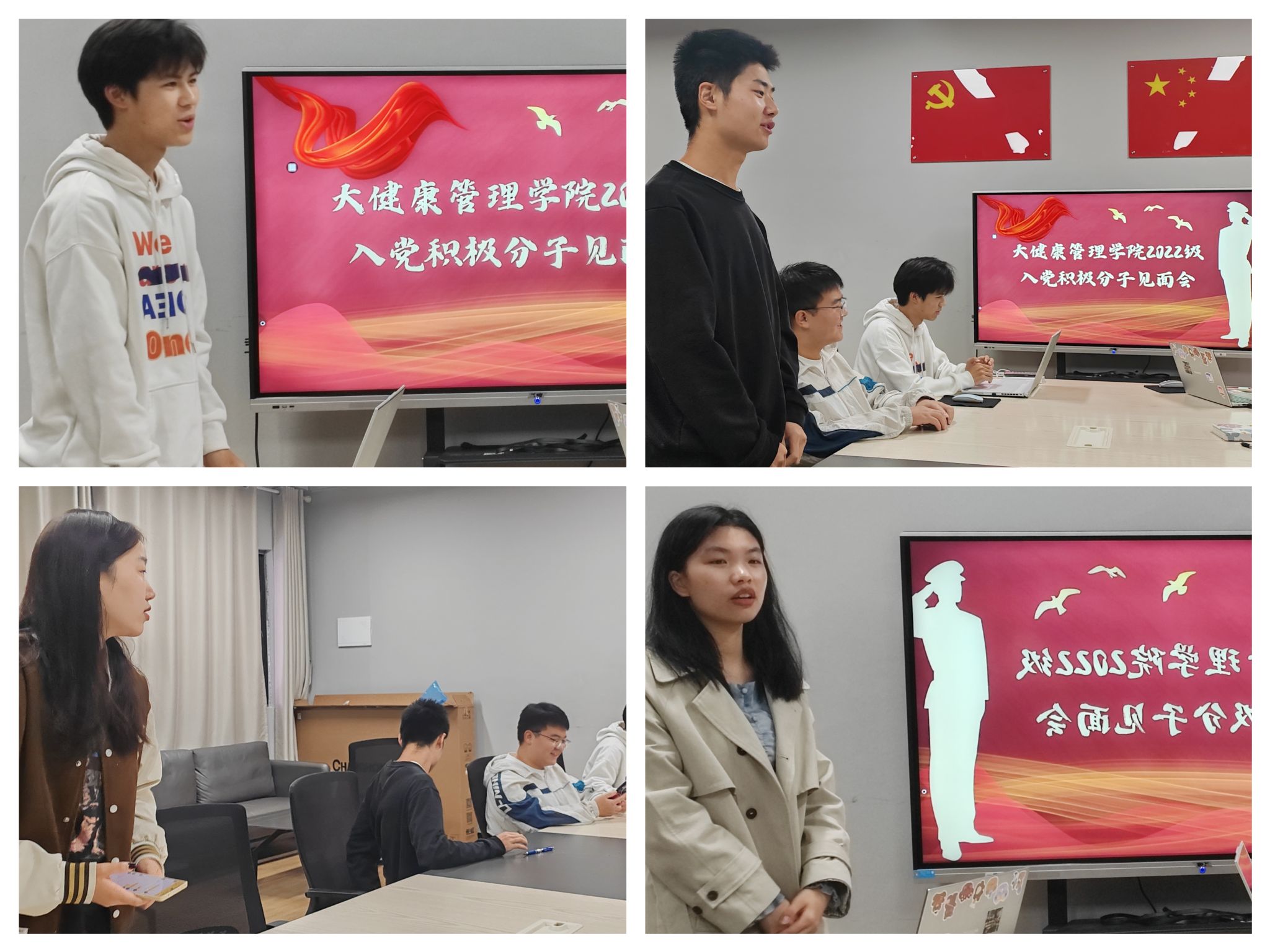 长风万里不动声色,山水一程三生有幸。会议伊始,主持人简明扼要地向入党积极分子们介绍了本次见面会的内容,并鼓励入党积极分子们以蓬勃的朝气投入到之后的学习之中,为党建工作贡献出自己的力量。自我介绍是一种向他人展示自己的方式,是你我之间了解的过程。通过自我介绍,得知你我有共同之理想、共同之信念,大健康管理学院第一期入党积极分子们开启了学习之路,开启了我们缪力同心,和衷共济的建设之路。