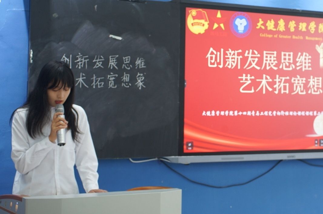 奋楫者先,创新者强。放飞想象翅膀,创造艺术人生。以青马工程为载体,完满教育为依托,共同促进青马学员内外兼修、全面发展,推动学员探索未知、挑战不可能。大健康管理学院于2023年11月10日星期五中午12:30在綦河书院二号楼智慧教室开展“创新发展思维·艺术拓宽想象”——大健康管理学院第十四期青马工程完骨初阶班理论课程第二讲。本次理论课程第二讲授课,特别邀请了创意写作学院王恒绩老师、瀛洲科幻学院李筱璐老师,为完骨初阶班全体成员进行授课。