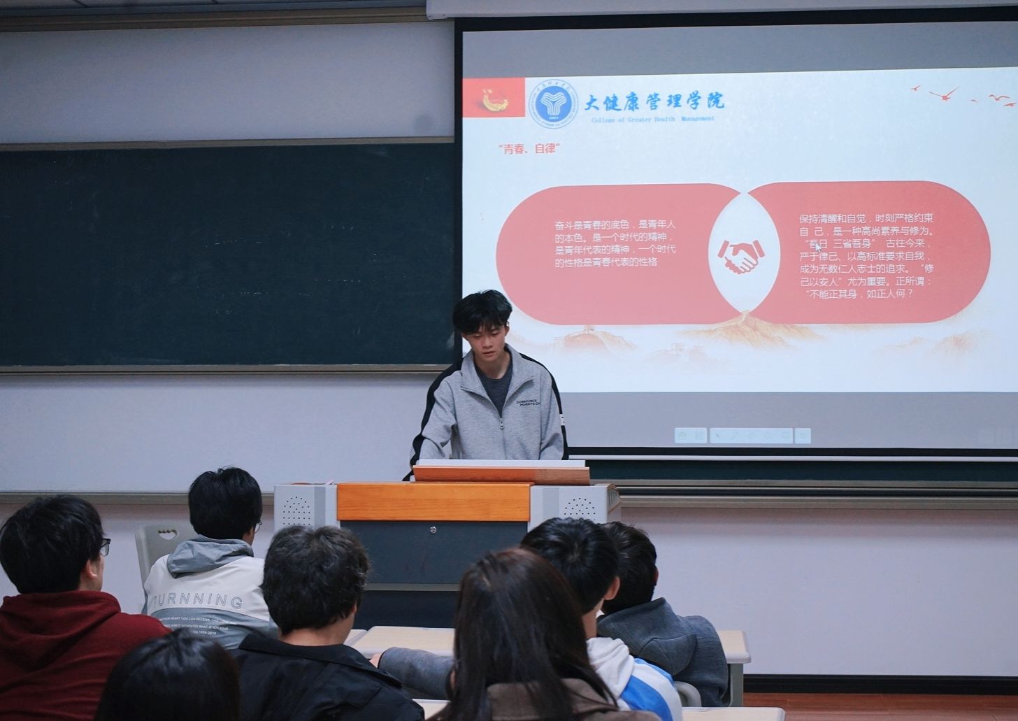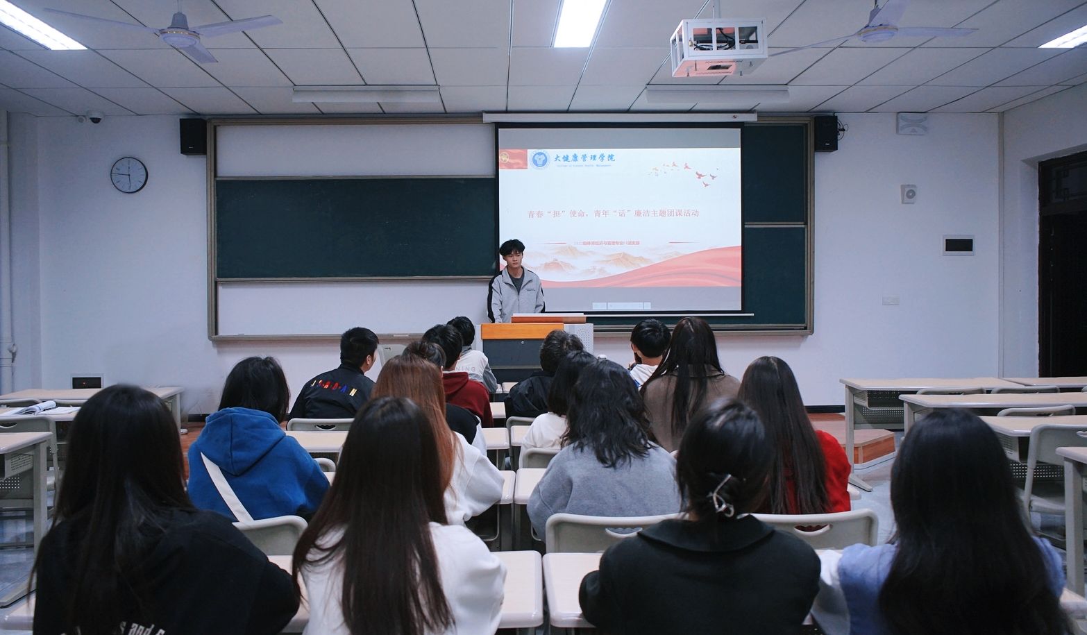 习近平总书记在党第二十大报告中指出,“只要存在腐败问题产生的土壤和条件,反腐败斗争就一刻不能停,必须永远吹冲锋号。”为弘扬中华传统美德,促进大学生树立廉洁意识,提升青年学生“知廉信廉,敬廉崇洁”的思想,大健康管理学院2022级体育经济与管理01团支部于11月13日开展大学生青春“担”使命,青年“话”廉洁主题团课。