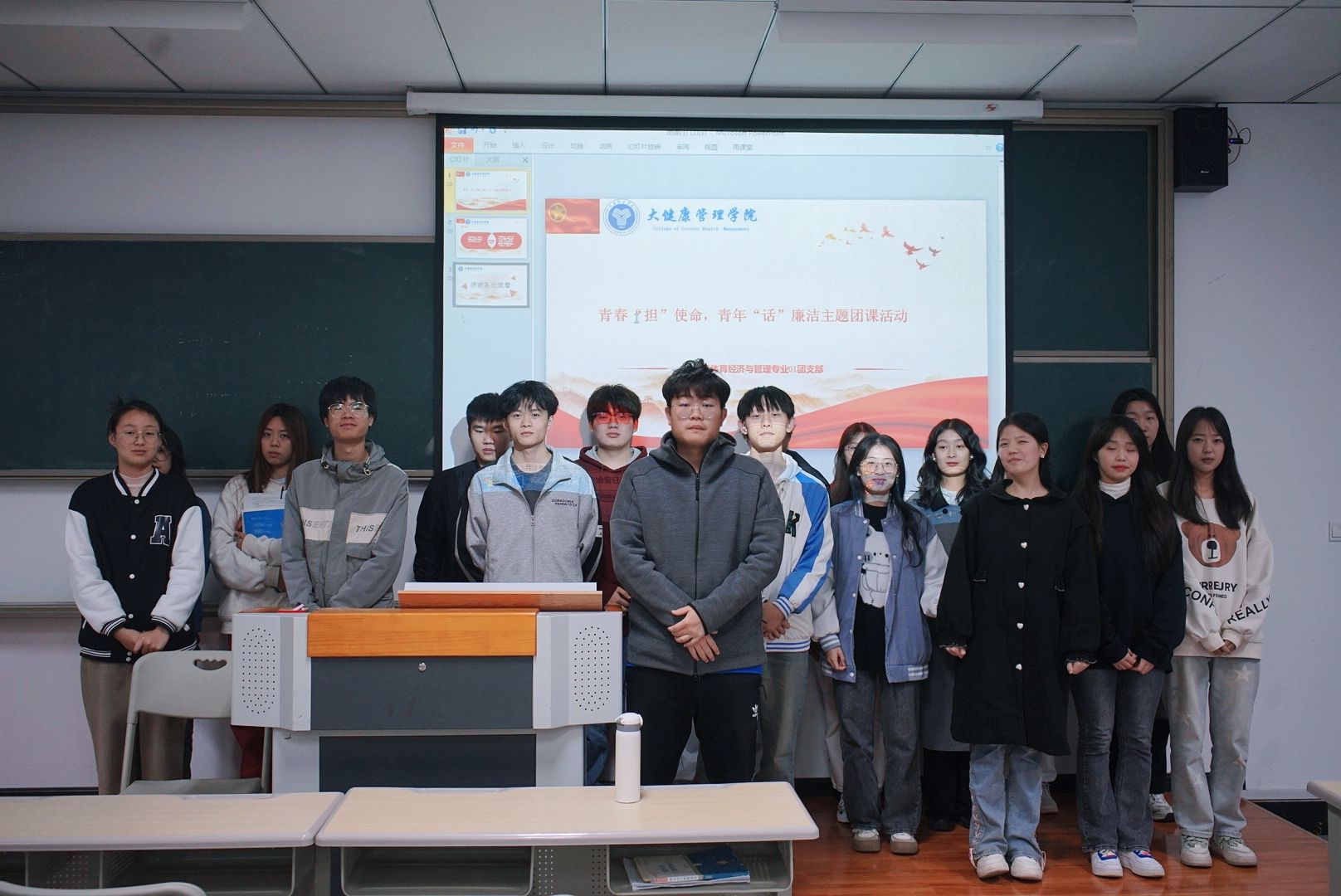 通过此次会议,大家也意识到:“作为一名团课学员,我们要积极响应习近平总书记在党的二十大报告中坚定不移听党话、跟党走,怀抱梦想又脚踏实地,敢想敢为又善作善成的号召,在实现第二个百年奋斗目标的新征程上,高举中国特色社会主义伟大旗帜,认真贯彻习近平新时代中国特色社会主义思想,始终把清正廉洁贯穿到日常工作生活的方方面面。”做到把握青春,坚持自律。