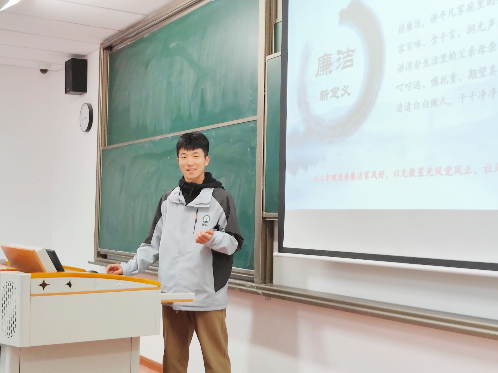团员代表徐梓桐同学有感而发,“通过此次廉政教育的学习,我更加深刻地懂得反腐倡廉的重大意义,特别是对一些发生在我们身边的活生生的反面典型的警示教育,使我感触颇深,对开展党风廉政建设的重要性和必要性有了更进一步的认识和了解。这次活动让我对相关内容在原有的学习基础上有了更进一步的提高,在一些方面拓宽了思路,开阔了视野,从而进一步增强思想政治素养,增强拒腐防骗意识和能力,提高了保持清正廉洁的自觉性,在思想上筑起党风廉政建设防线和思想道德防线”,随后他号召同学们,“廉洁,对于我们来说并不遥远。作为青年学子,我们应该要明白党的思想路线,就像习题中所要求我们要做到的尺规作图那样,时刻谨记纪律的重要性,加强自己的思想道德建设,培养‘出淤泥而不染,濯清涟而不妖’的廉洁的高尚品德。”