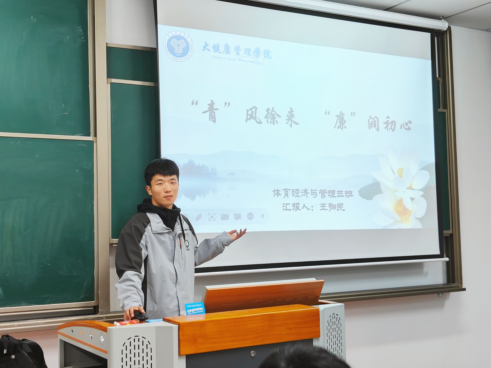年轻一代是国家的未来与希望,他们对于社会风气的塑造起着重要的作用。在当今复杂多变的社会环境中,青年树立清廉凤的重要性不可忽视。青年人是国家未来的接班人,只有通过青年人的努力,我们未来才能建设一个更加廉洁正义、和谐稳定的社会。为深入学习贯彻习近平新时代中国特色社会主义思想,落实学院“强化理论武装,树‘青’廉”主题教育活动,2022级体育经济与管理03团支部于2023年11月13日14:00在勇者楼开展以“‘青’风徐来·‘廉’润初心”为主题的团支部团课理论学习活动。