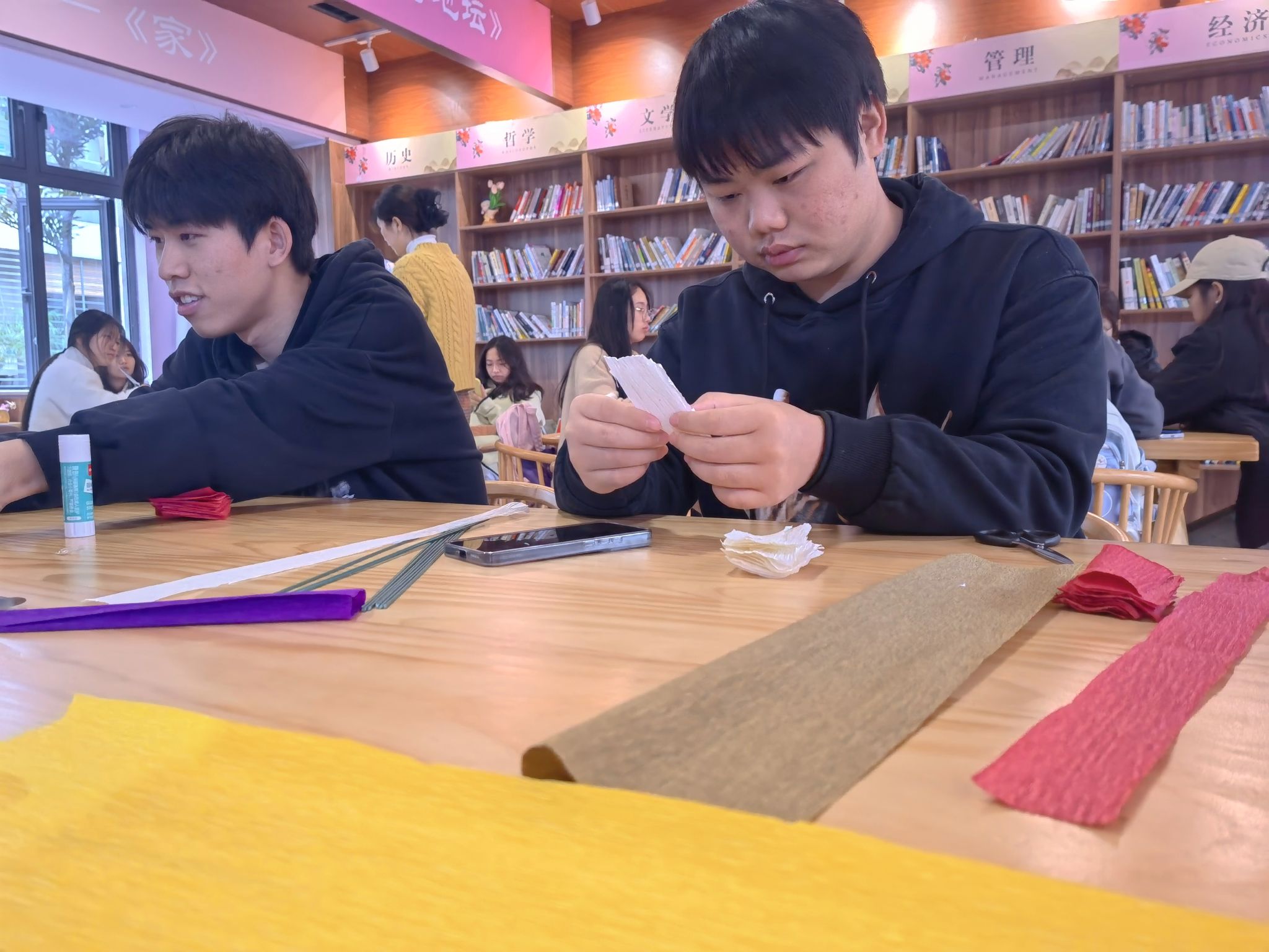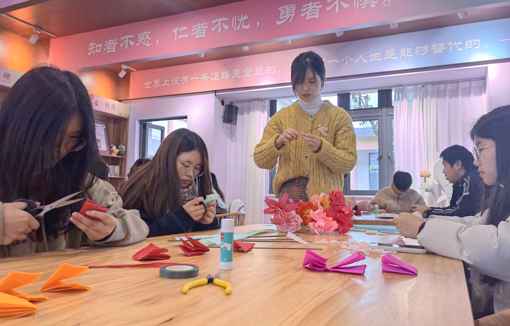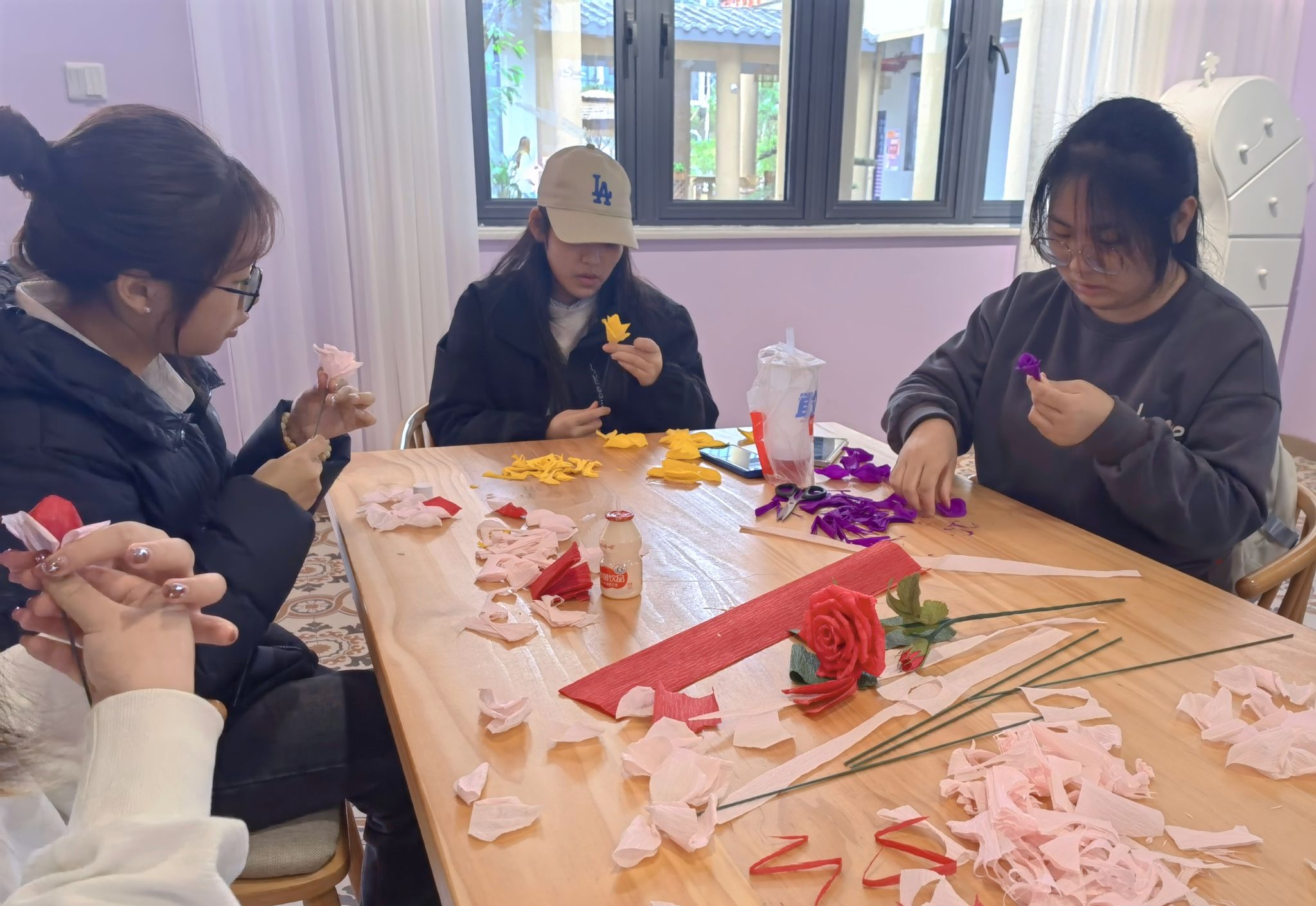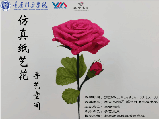 生活需要浪漫来点缀,每个人都有一支只属于自己的心上玫瑰。为了让学生们能够了解、传承和发扬传统手工艺文化,手艺空间项目指导老师彭丽珺老师于2023年11月14日下午两点在观云书院芒种·华文书吧举办了“以手造物·以物寄情”—大健康管理学院手艺空间之仿真纸艺玫瑰花制作活动。通过此次活动带领学生们了解和学习仿真纸艺玫瑰花的制作方法,感受手工艺的魅力。以亲手制作,提高动手能力和创新意识。