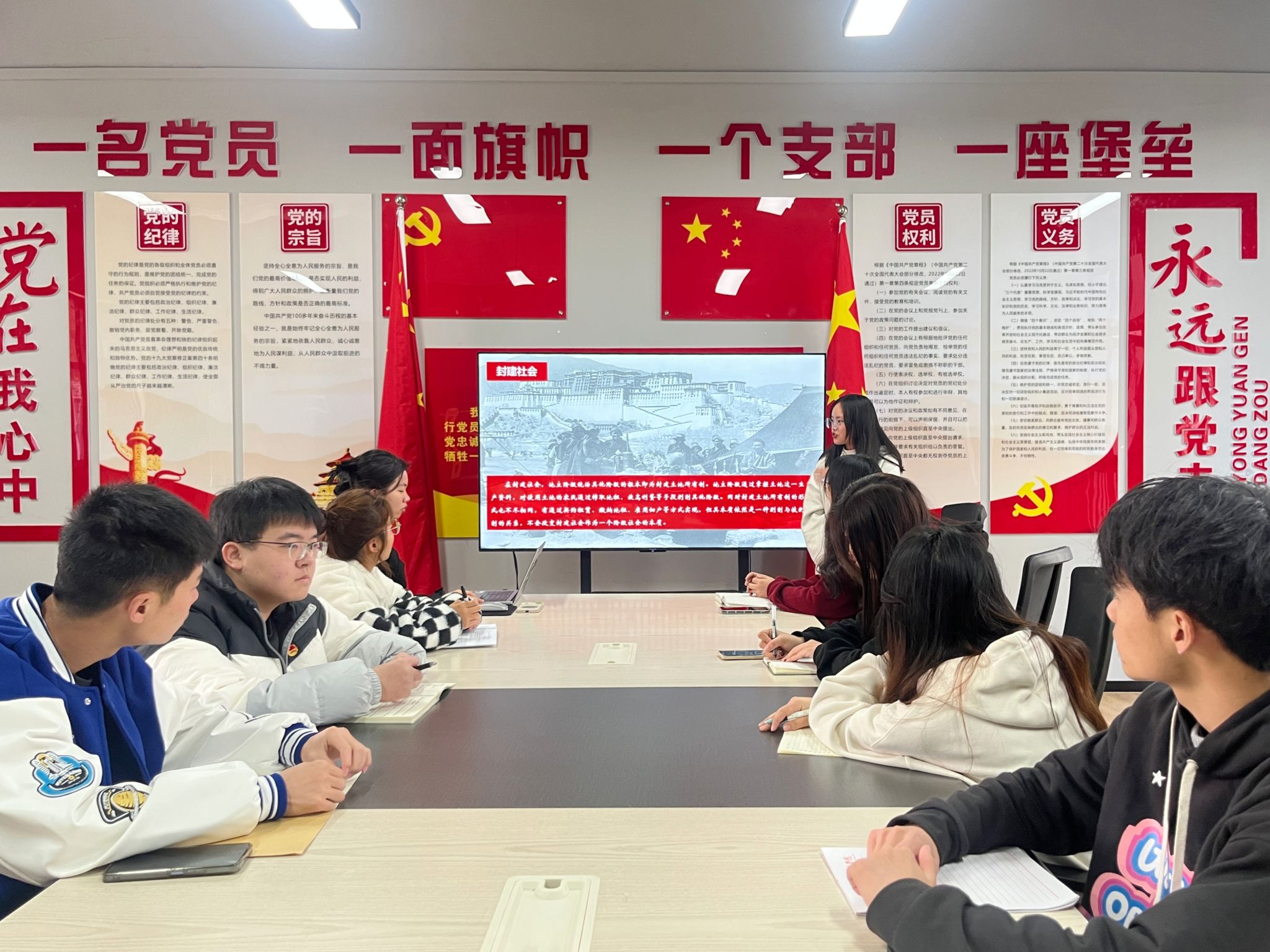 旗帜引领方向,党建凝聚力量。为推进我院党建工作蓬勃发展,提高入党积极分子组织性、纪律性。大健康管理学院于2023年11月21日12:30在横山书院党团活动室开展了“知往鉴今悟真理·与时俱进谋发展”——大健康管理学院第一期入党积极分子11月思政教育活动,主题为“回看走过的路,比较别人的路,远眺前行的路”。本次活动由入党积极分子赵梅领学。