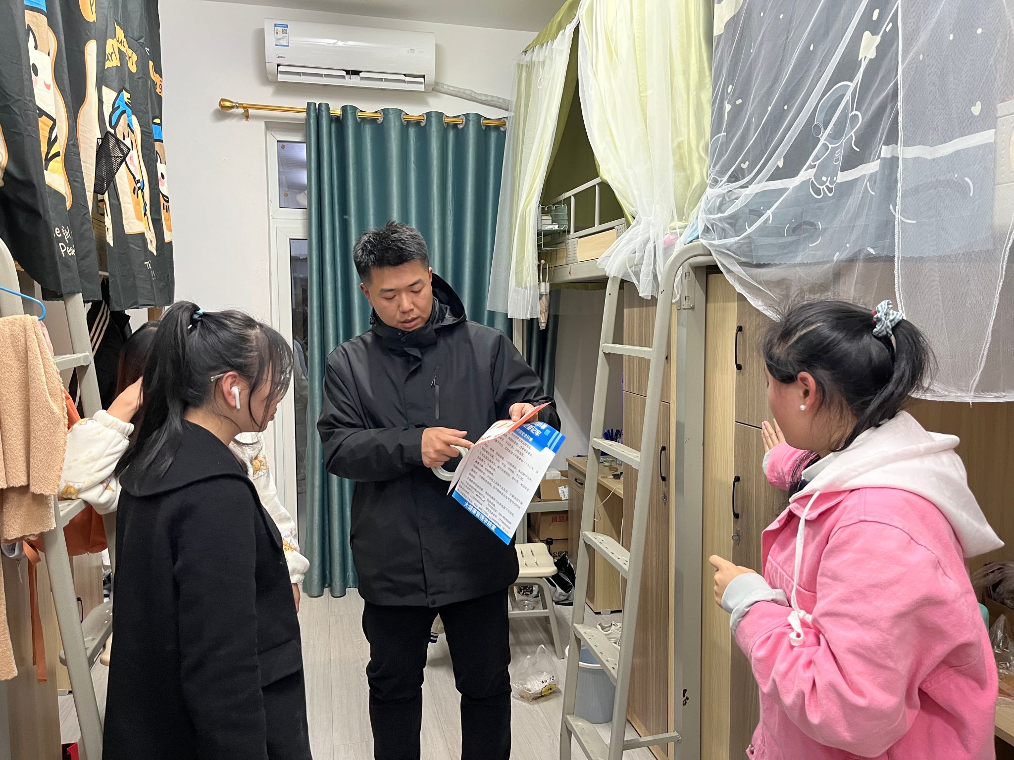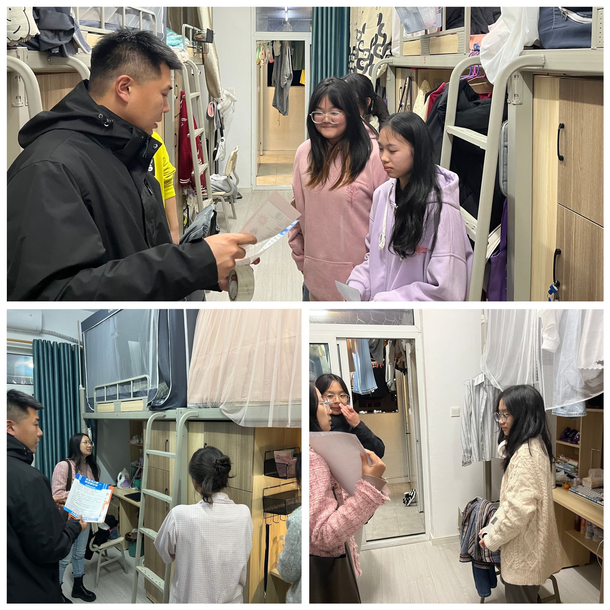 温暖相伴,防范未“燃”。活动伊始,学工办主任童学容老师、辅导员孙泽宇老师与大健康学院权益部联合,对寝室消防安全隐患进行了排查。通过排查和解决潜在的安全隐患,向同学们强调了火灾对生命和财产的危害性,并提醒同学们要对自己和他人的安全负责。童老师特别解释了一些常见的火灾原因和预防措施,使同学们更加了解到寝室消防安全的重要性,积极参与改善寝室安全环境之中,为预防火灾提供实际的帮助和支持。强化消防意识,建立牢固的安全防线。学院后期计划定期组织宿舍安全卫生检查,以确保安全工作不松懈。希望同学们共同维护好宿舍这个生活空间,时刻保持消防安全意识,共同维护消防安全。