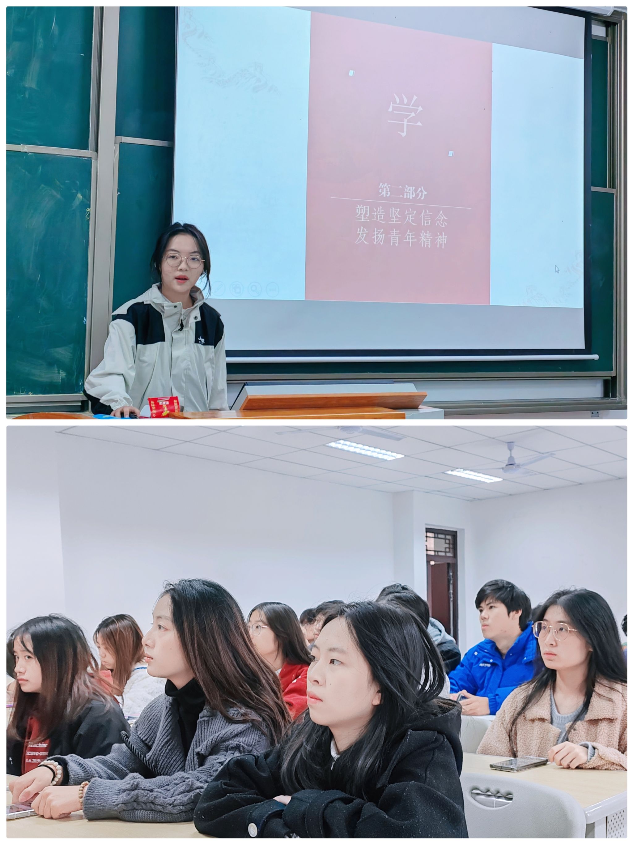首先,22级体管1班团支部书记陈威宇从“作为新时代新青年,必须坚定理想信念,熔铸忠诚之魂”为大家进行讲解。新征程上,广大青年必须经得起具有新的历史特点的伟大斗争检验,将心中信仰化作指路明灯,在向梦前行的道路上笃行不怠,“信仰火炬”映照出“追梦光彩”,让闪闪发光的青春照亮奋斗人生。青年们要心怀“国之大者”,增强“四个意识”,坚定“四个自信”,做到“两个维护”,把坚定理想信念作为终身课题,将“坚信笃信”落实到一言一行、一点一滴。熔铸忠诚之心,坚定信仰之魂,彰显笃行之力,实现理想与行动的高度契合,坚定不移跟上新时代步伐,为新征程奋力续写绚烂多彩的青春新篇章。