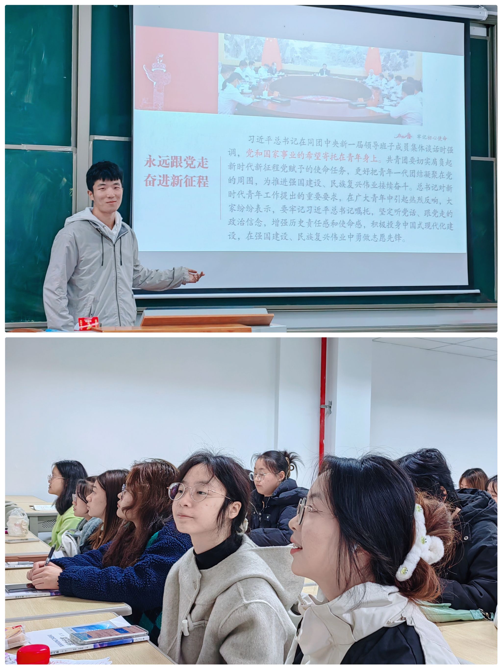 最后,22级体管3班团支部书记王翔民从“作为新时代新青年,必须勇于担当作为,发扬斗争精神”方面讲述了新时代呼唤新担当,新时代需要新作为。回望历史,正是一代代中国青年前赴后继的担当奋斗,勇做走在时代前列的奋进者、开拓者、奉献者,我们才创造出经济快速发展和社会长期稳定的奇迹,才迎来中华民族伟大复兴的光明前景。广大青年要始终保持干事创业的奋斗姿态,以拼搏奋斗之力书写青春业绩,把对事业的热爱写在基层的阡陌田埂上,写在为民服务的“大文章”中,用实际行动诠释新时代新青年的理想和奉献、使命与担当,让自己的青春闪耀出绚丽的人生光彩。