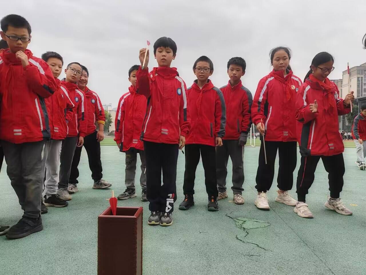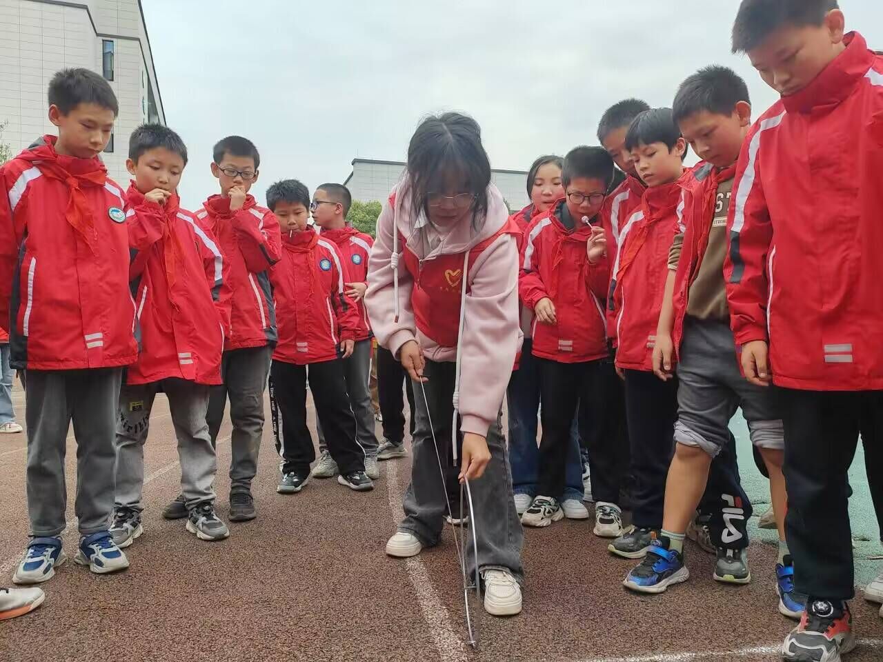 做阳光少年,展自我风采。在宣讲结束后,志愿者将小朋友们带到操场,进行传统民族运动普及。采取“铁环接力赛”和“国潮投壶”两个活动,由志愿者向小朋友们分发铁环、竹靶等道具,并进行手把手教学,促使小朋友们更好掌握技术要领;在教学结束后,让小朋友们四人一组进入自由练习时间。在练习结束后,志愿者谭国浩组织同学们进行小组友谊赛,让小朋友们切身的体会到传统体育文化的乐趣和魅力,并在最后为表现优秀的小朋友们送上精美小礼品。接着再由志愿者工作人员教授小朋友进行投壶挑战,他们将小朋友分为四组进行自由训练,并在一定时间后进行比赛,由排名分发奖励。小朋友们在做完两个活动后,虽然流出了汗水,但脸上洋溢着笑容,汗水浸透的笑容会晶莹剔透,这会让他们意识到体育竞技的魅力,认识到自己通过努力创造的成功更加来之不易。