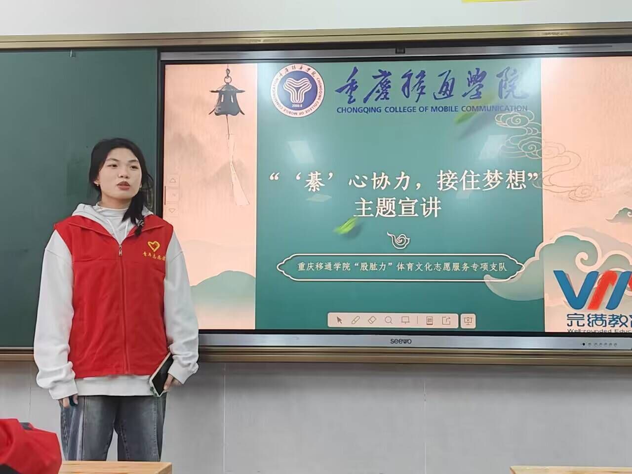 体育无处不在,运动无限精彩。当天下午,股肱力支队长谭国浩组织志愿者在校门口集合一起前往通惠小学。在进入通惠小学后,支队长李圣昕负责维护组织活动现场秩序,由股肱力支队成员的志愿者李可欣和田承凤作为主讲人为通惠小学6年级3班宣讲关于中国传统体育的发展历程,以及从建设国家形象、促进身体健康、培养民族自信心和自豪感、促进社会和谐发展等多个方面宣讲我国的传统体育文化发展的意义,让小朋友们切身感受到传统体育活动的魅力。