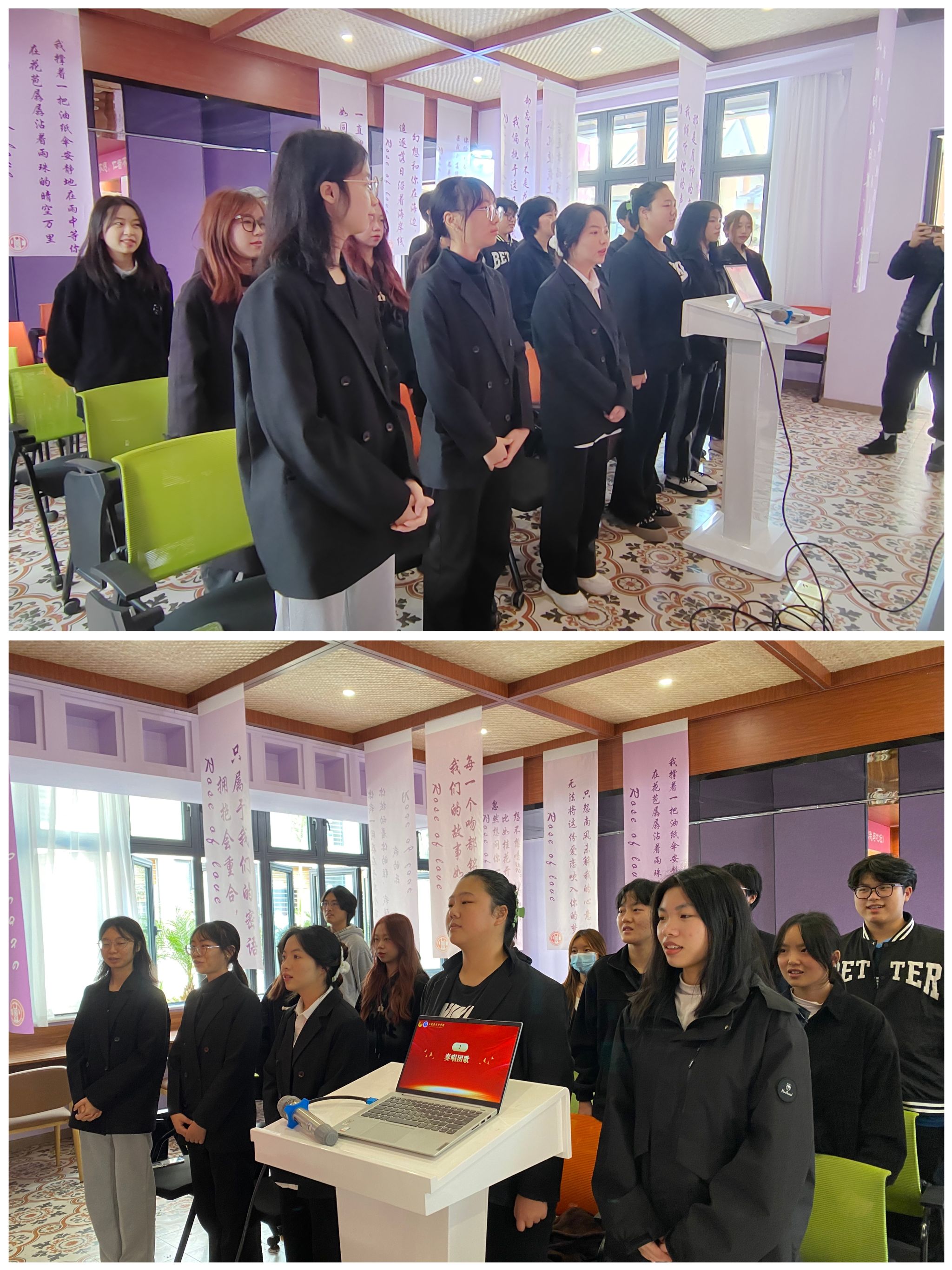 活动伊始,全体起立,共青团们听到悠扬的旋律后齐声唱起了团歌。在激昂澎湃的团歌声中,大会正式拉开帷幕。“我们是初升的太阳,用生命点燃未来。”歌词中不仅蕴含着共青团员们对未来的憧憬,还象征着功能型团支部将在这个崭新舞台上绽放出属于自己的光芒。