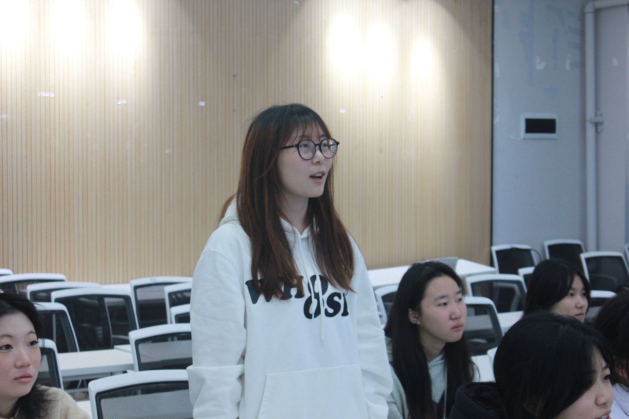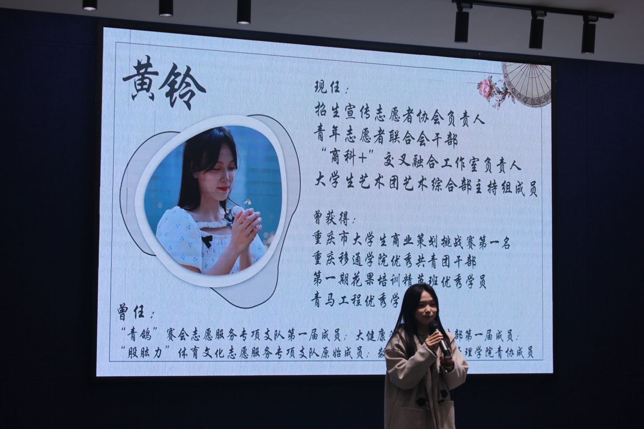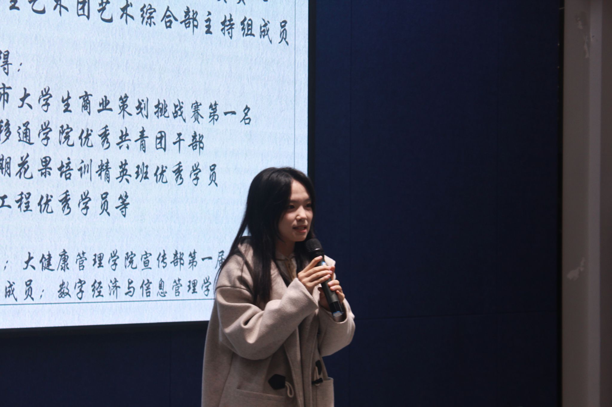 纵有狂风拔地起,我亦乘风破万里。理想信念是航海的帆,指引我们向着正确方向前进,纵使前路荆棘密布我们也要乘风破浪、披荆斩棘、砥砺前行。会议开始黄铃学姐通过绕口令的方式与干事们进行了欢快的互动,并分享了关于如何理解自信的相关内容以及她的大学生活,教导干事们应具备“浮舟沧海,立马昆仑”的雄健气魄、“长风破浪会有时,直挂云帆济沧海”的坚定信念。让干事们拥有坚定的理想信念,明确自己未来的目标,勇敢的接受自己的缺点树立自信心,从而更好的从事自己的工作。岁月之羽掠过时间的河,拂过一片浩瀚星河,我们应在岁月的长河中,用如金的信念、如磐的理想去聆听理想绽放的声音。