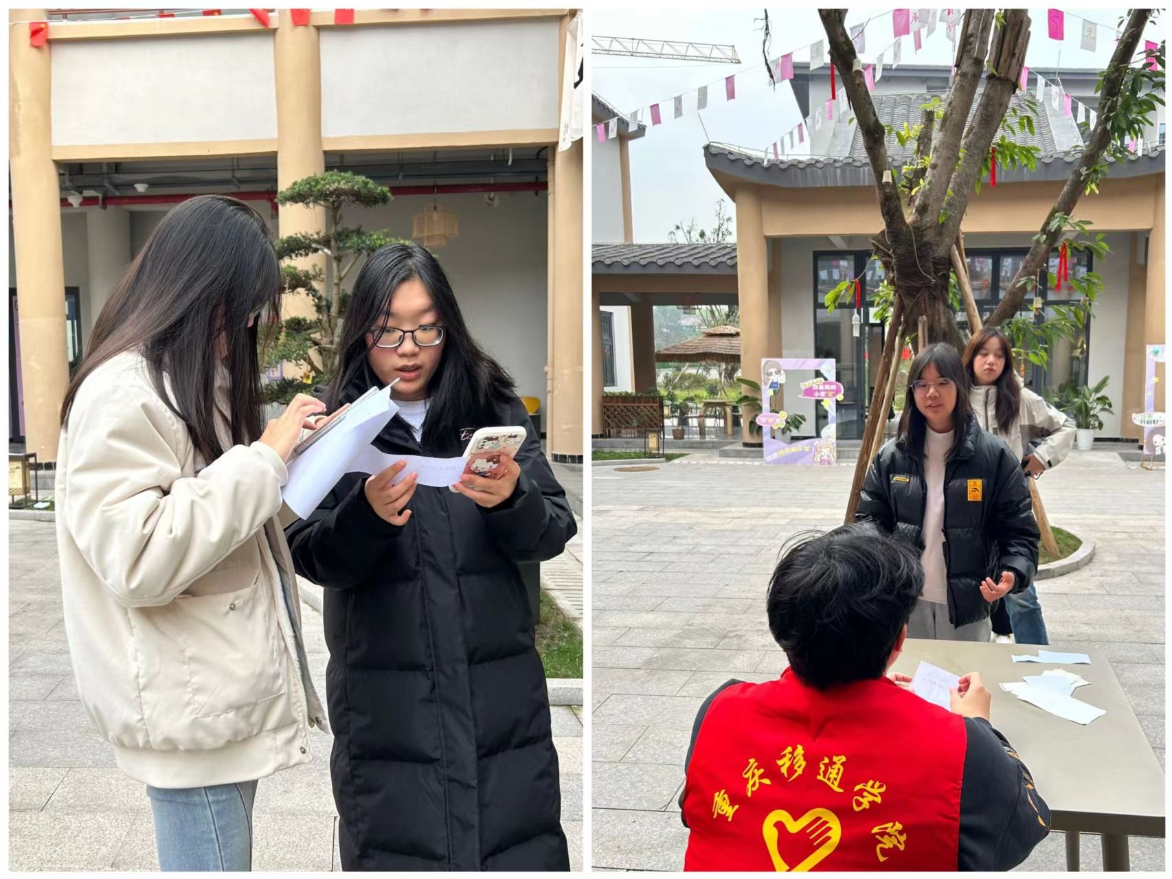 冀以尘雾之微,补益山海,荧烛末光,增辉日月。为了加深移通学子对志愿者和志愿服务活动的了解,推动志愿服务制度化常态化,以便后期志愿活动的开展。大健康管理学院青年志愿者协会于2023年12月6日13:00–16:00在观云书院和古剑书院开展了“一‘綦’志愿·你我同行”志愿答疑活动。志愿者们齐聚于此为移通学子答疑解惑,宣传志愿服务的理念和价值观,吸引更多的人参与到志愿服务中来,促进志愿者之间的交流和互动。