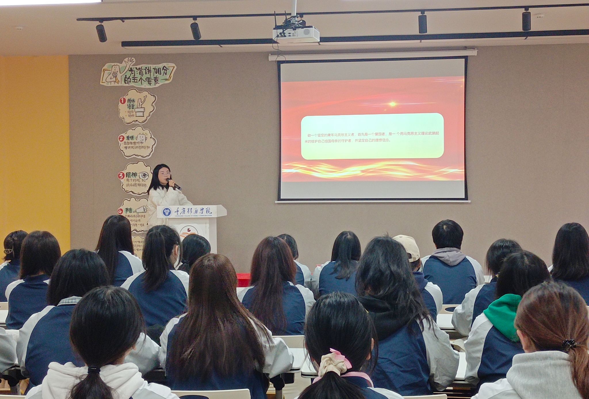 青年一代有理想、有担当,国家就有前途,民族就有希望。为深入推进“学党史、强信念、跟党走”学习教育,引导青马学员铭记党的关怀、增强奋斗意识,大健康管理学院于2023年12月13日12:30在瀛溪书院语者演讲培训室举办“学思践悟筑初心·锤炼本领担使命”——大健康管理学院第十四期青马工程完骨初阶班理论实践第一讲。本次理论实践第一讲授课,特别邀请了马克思主义学院汪姝丹老师,为完骨初阶班全体成员进行授课。