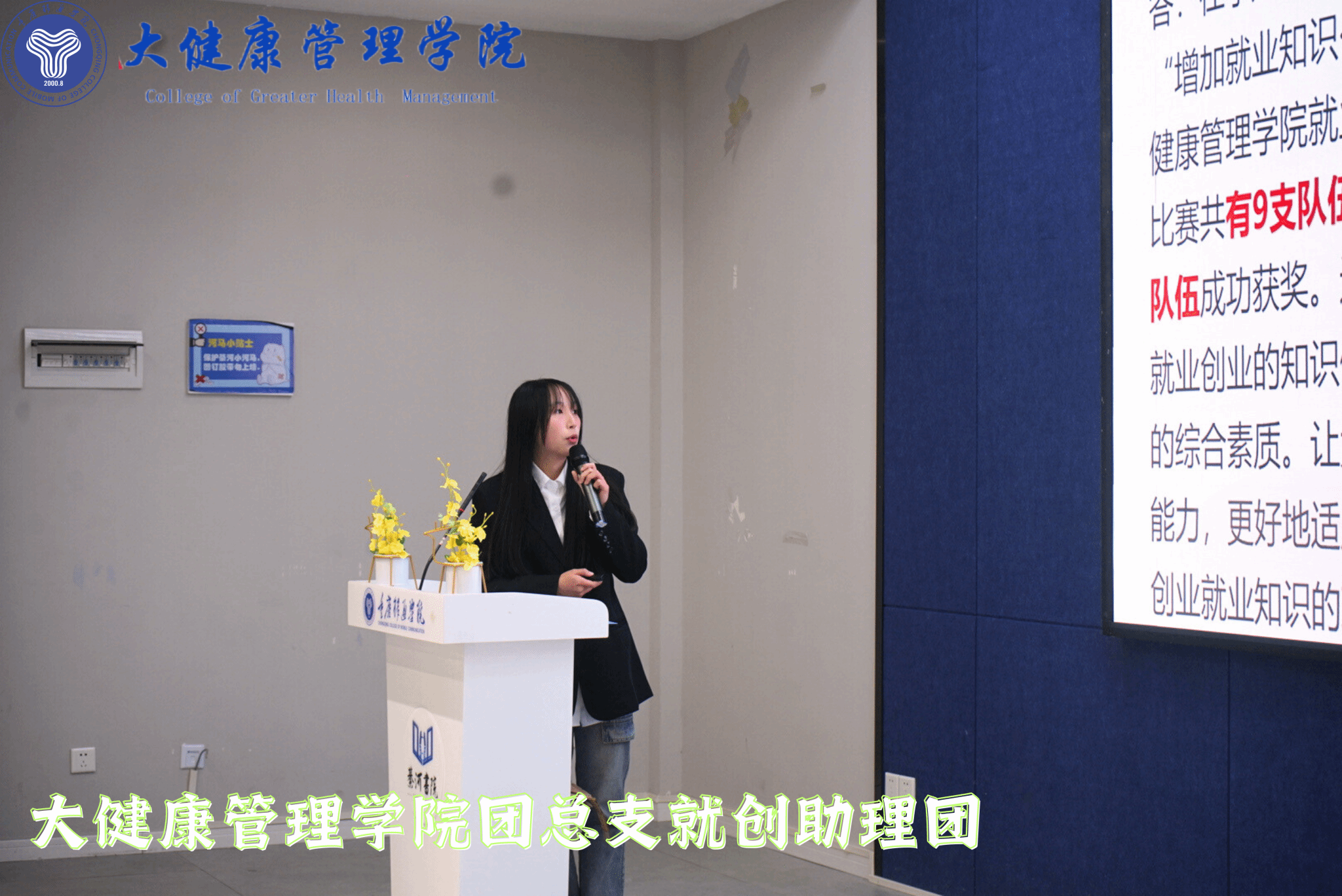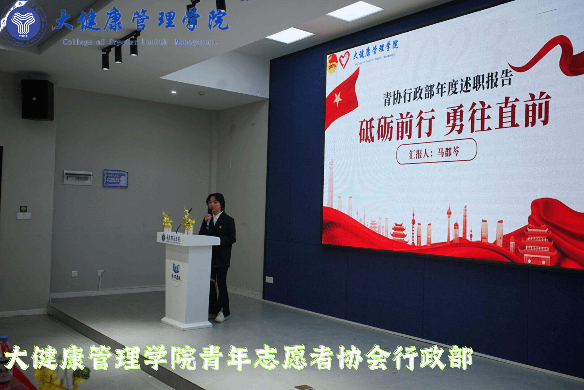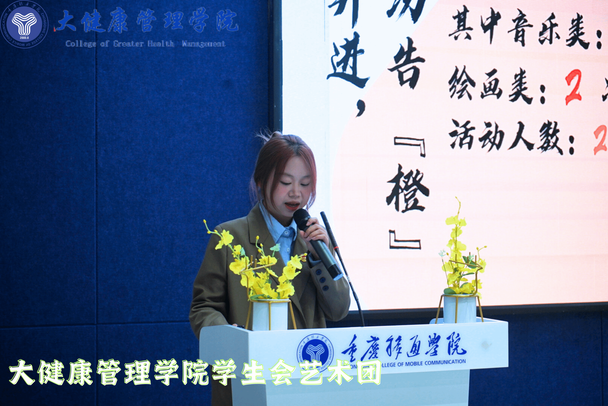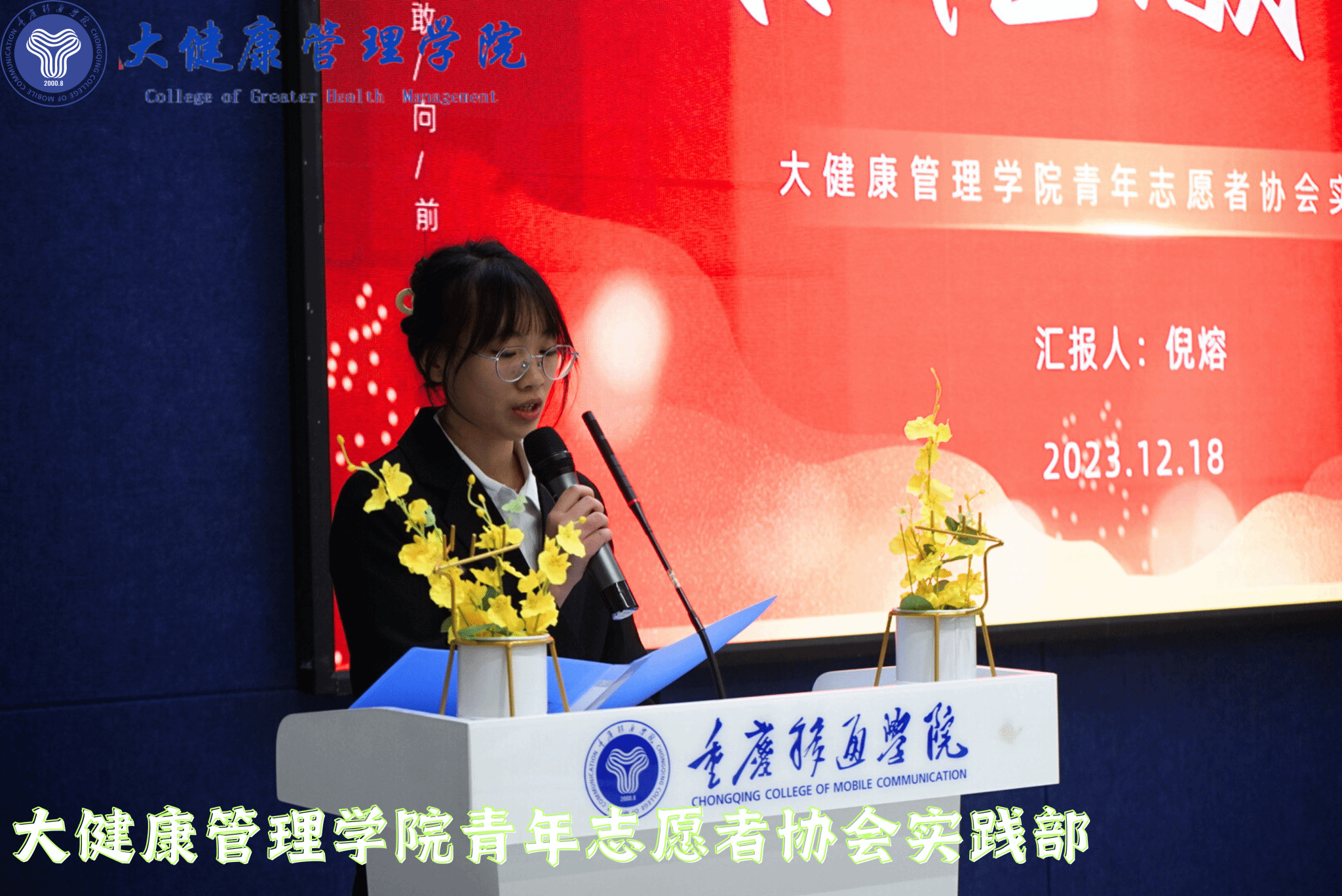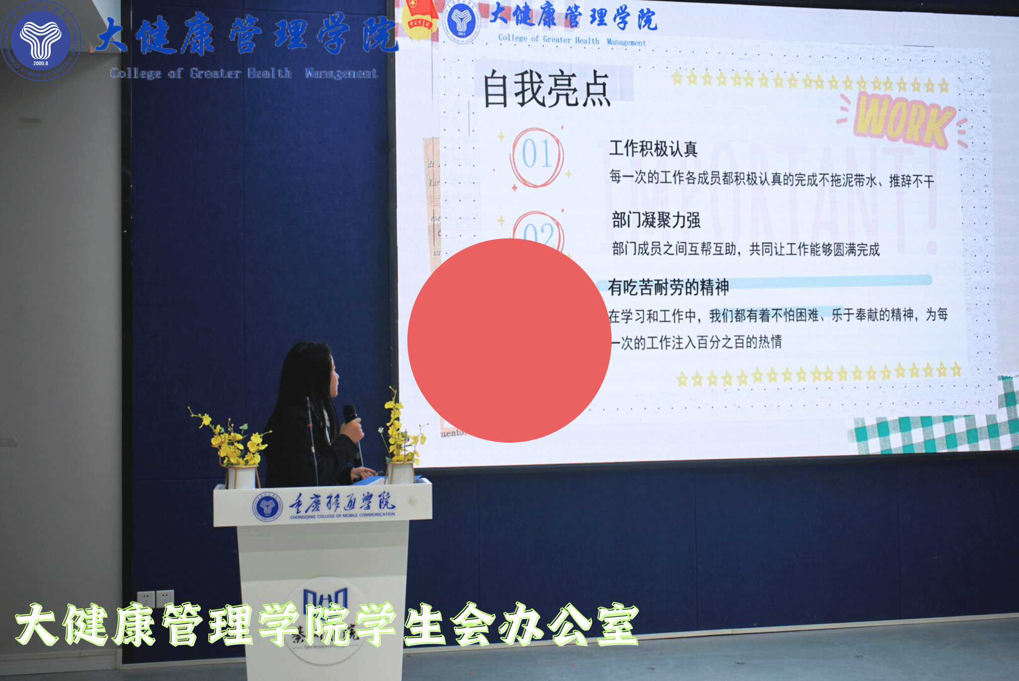 时光转瞬即逝,回顾过去,这一学期中思考亦多,感慨亦多,收获亦多。在学期结束之际,大健康管理学院于2023年12月18日在綦河书院2号楼观涛多功能室举行本学期学生组织述职大会。本次述职大会不仅仅是回顾本学期工作内容,总结工作经验,更能让各部门在未来工作中继续注重团队协作,共同探索解决问题的最优解,提高工作效率和质量。此次述职大会邀请到大健康管理学院学工办主任童学容老师,竞技体育与艺术修养板块指导老师孙泽宇老师。