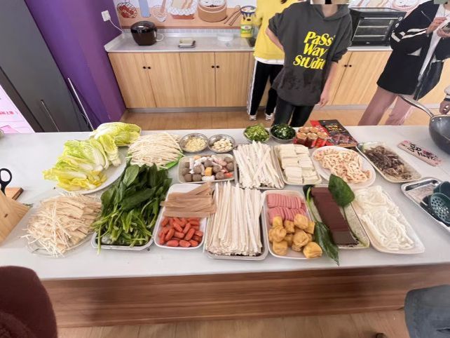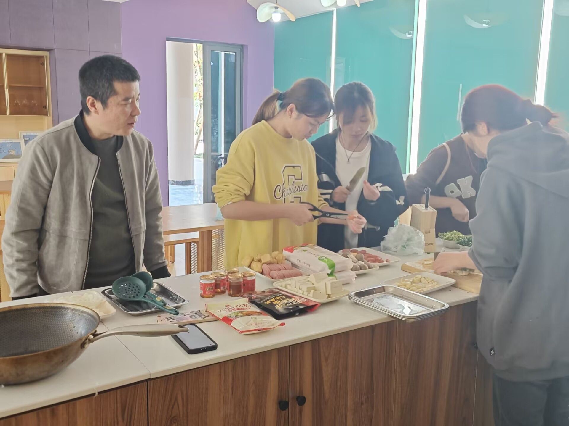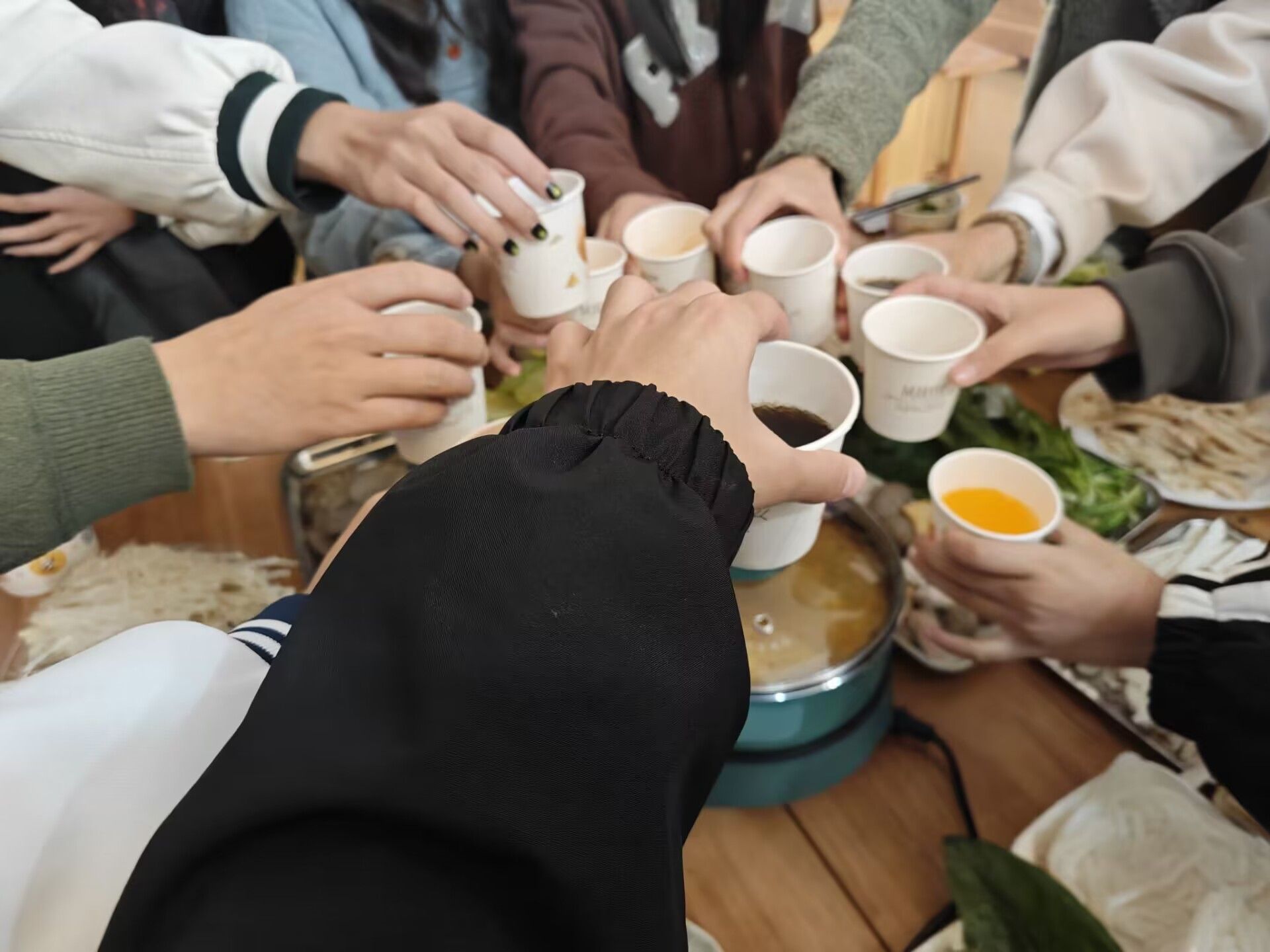 活动于周日中午十二点拉开序幕,所有人齐聚观云书院共享厨房,共同参与这次别开生面的团队建设活动。别开生面则是因为这不是一次一本正经的活动。而是选择了用火锅作为连接师生的纽带。同学们自发的准备食材,这边在洗蔬菜,那边在切肉类,时不时欢声笑语,映入眼帘的就是同学们青春洋溢、同心协作的模样。众所周知火锅文化是中国饮食文化的一部分,也是中国传统文化中的重要组成部分。火锅是一种荤素搭配的烹饪方式,其特点是将各种不同的食材放入同一口锅中涮煮,不同的食材正像同学们不同的性格,有的外放,有的内敛,火锅会包容不同的食材,正像异科班会包容不同性格的学生。大家围着充满热气的火锅,举杯畅饮,所有来源于不熟的紧张和不安都被融化在火锅沸腾之后升起的热汽里。老师与同学们着眼当下、畅谈未来,同学们分享了自己在学校里的趣事,引起大家的共鸣和热烈讨论。