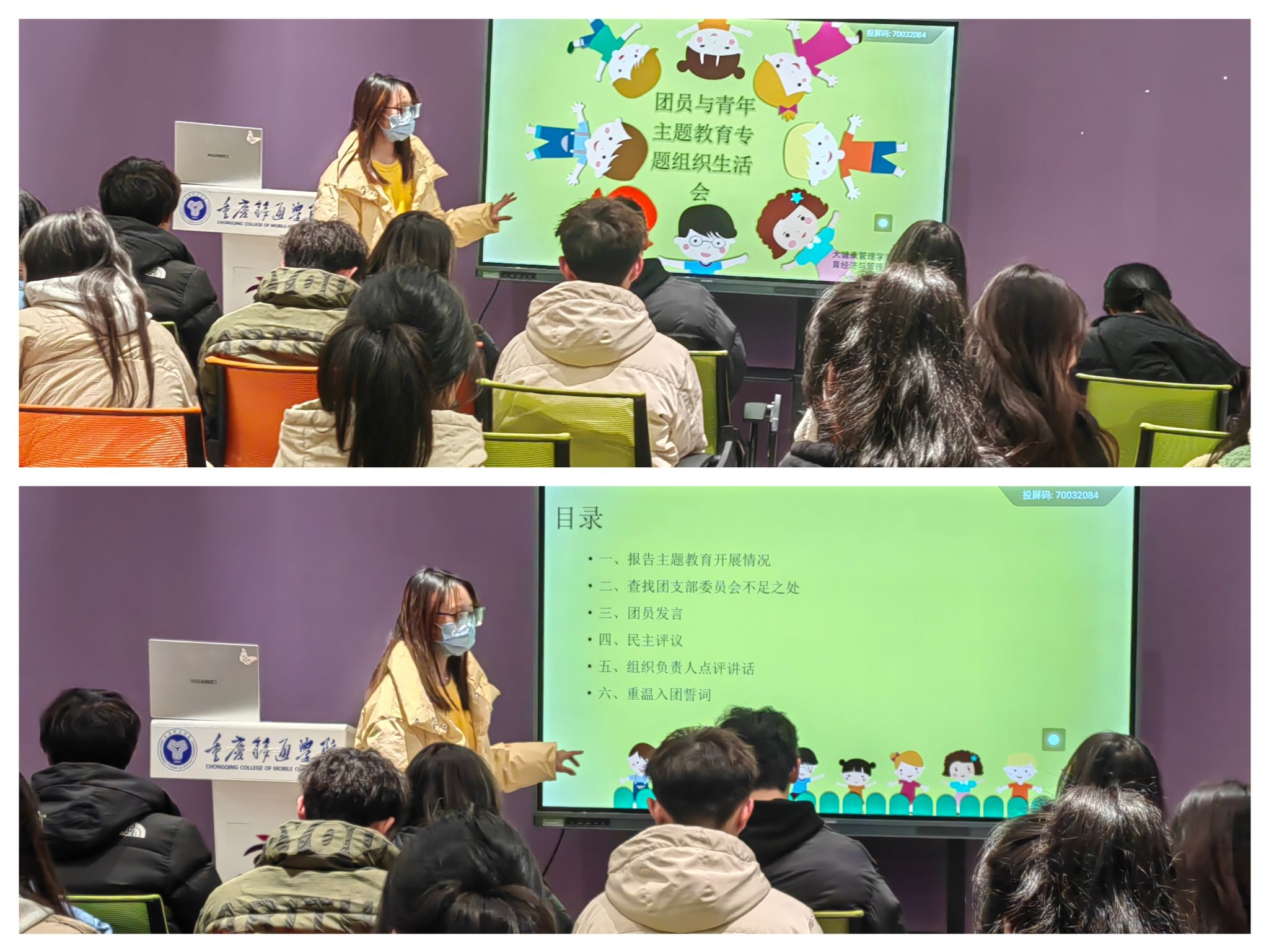 为深入贯彻落实党的二十大精神、习近平总书记在同团中央新一届领导班子成员集体谈话时的重要讲话精神、习近平新时代中国特色社会主义思想,大健康管理学院2023级体育经济与管理02团支部于2024年1月2日19:00在观云书院芒种·华文书吧教室开展以“铭记自身使命·承担时代重任”为主题的团员与青年主题教育专题组织生活会。