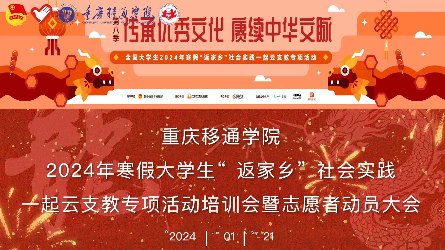集结青春的力量,共赴我们的约定。会议最后执行专员石莹同学说,假期云支教志愿活动是我们重庆移通学院的传统,云支教活动将我们牵连在一起,让我们和小朋友们一起运动、一起阅读,在体会当老师的快乐的同时,也是一次开拓视野的学习之旅。希望我们与小朋友们在云端相遇,为自己的假期赋予不一样的意义。至此,2024年大健康管理学院云支教动员大会到此结束。此次云支教志愿活动,共有25名学生参与,他们与小朋友们的寒假注定精彩!