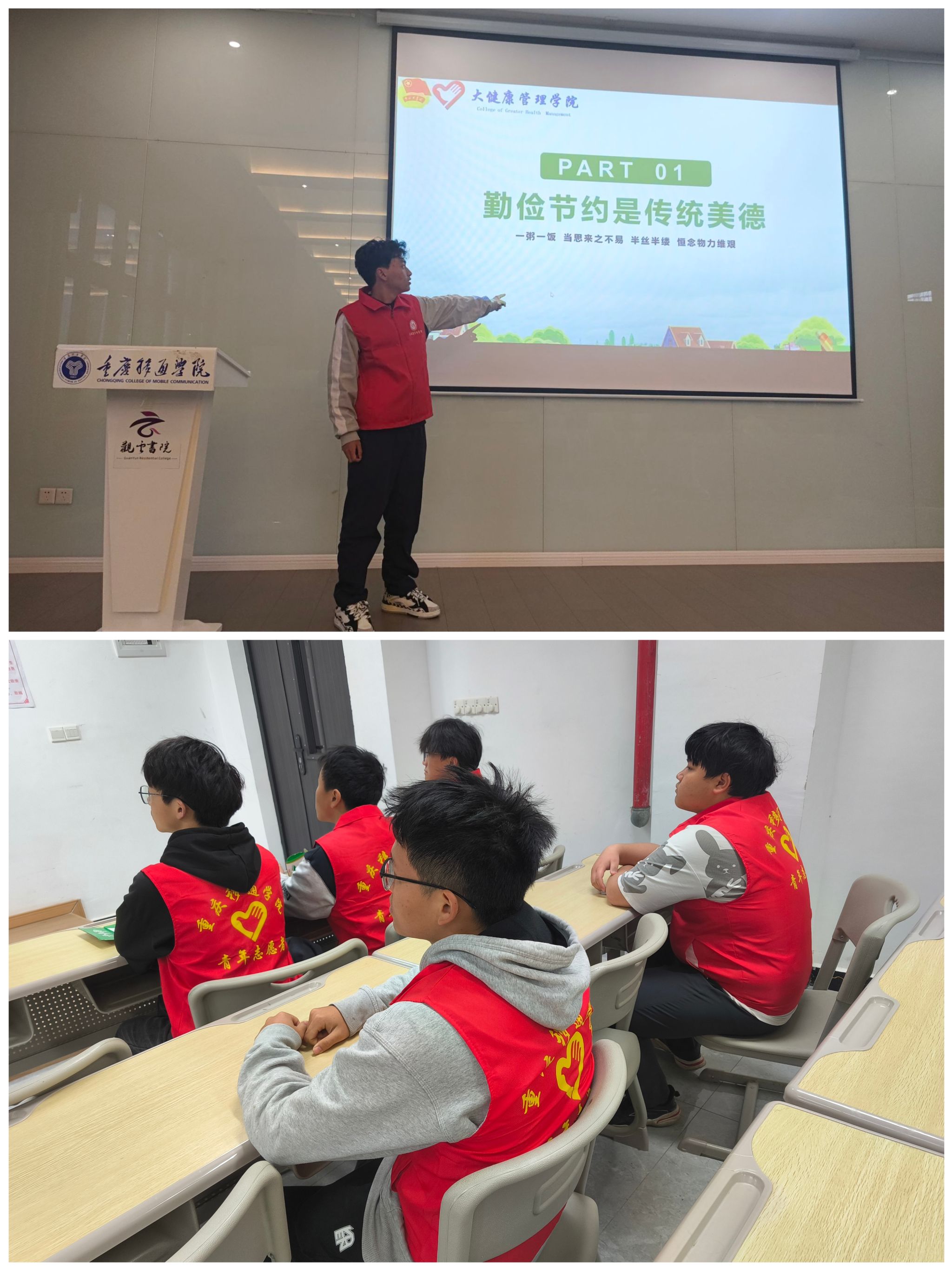 草长莺飞三月天,雷锋精神代代传。为践行雷锋精神,弘扬和传承勤俭节约的传统美德。同时为了创建绿色低碳的新校园,大健康管理学院体育经济与管理2班的志愿者们于2024年3月15日晚上6点走进观云书院冬至·多媒体教室进行志愿活动。