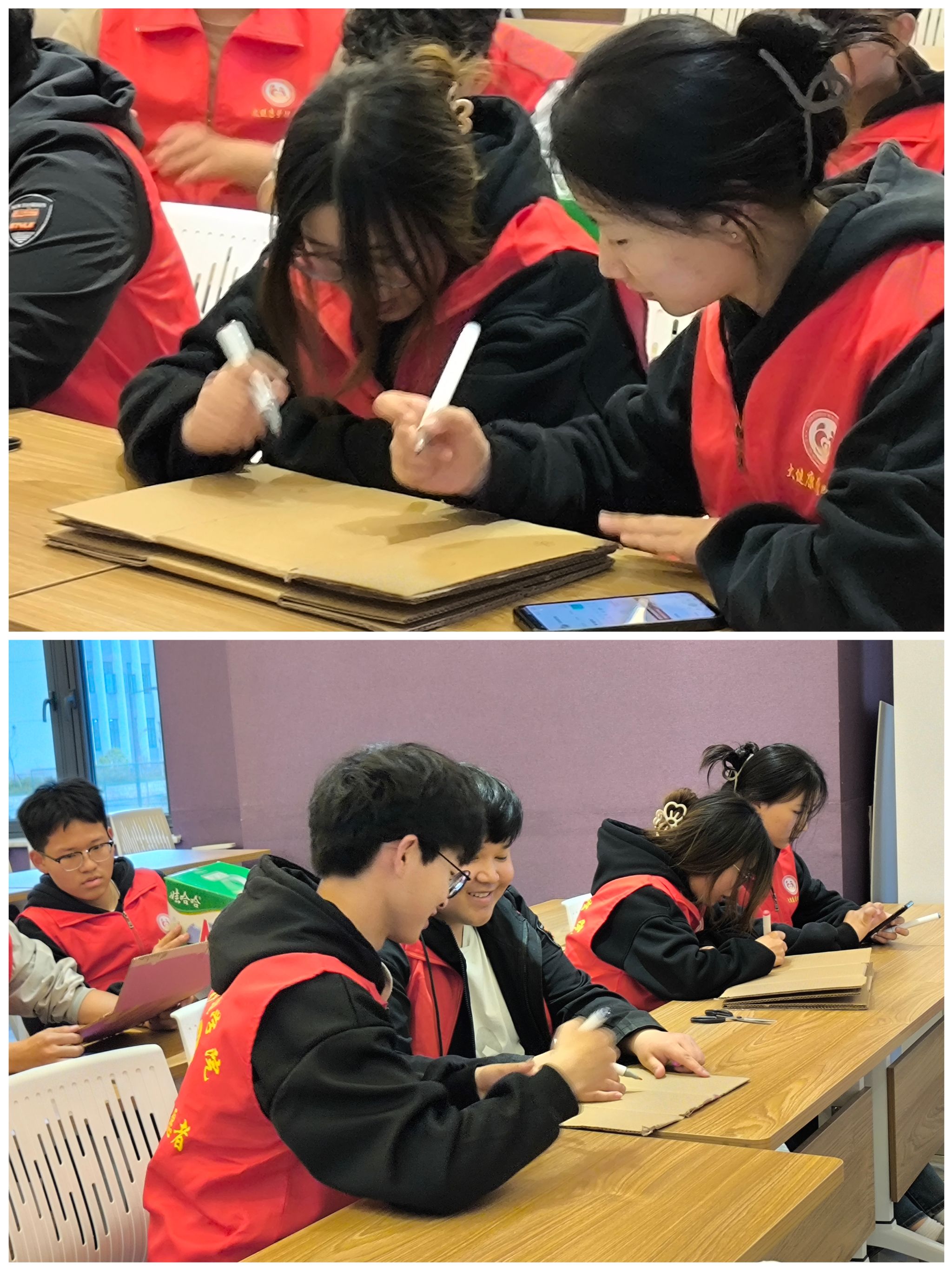 勤俭节约和绿色低碳的结合,是大家对美好生活的追求。通过此次志愿活动,志愿者们用实际行动向大家展示了日常生活中的废旧纸壳可以如何处理,提高了志愿者的动手能力和解决问题能力。志愿者们用心进行废旧纸壳的文化创造,剩下的废纸壳边角料也统一扔进可回收垃圾箱内。从中大家可以以小见大,这对传承和发扬勤俭节约的美德、创造绿色低碳的校园都具有重要意义。它们将助力我们走向一个更加绿色、更加和谐的世界。让我们一起为地球家园贡献一份力量!