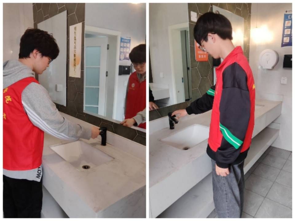 随后,志愿者们带领同学们巡视校园,检查水龙头。现场井然有序,同学们都积极配合志愿者们的引导,仔细的观察各处的水龙头。将用完的水龙头拧紧,遇到坏的即刻找老师请人帮忙修理。通过亲自参与,同学们能深刻的体会到“节约用水,从身边小事做起”的意义。“徒临川以羡鱼,俟河清乎未期,与其终日苦思困于心,不如起身始于行”一切伟大皆源于一个渺小的开始。所以我们应从小事做起;随手关紧水龙头,用洗衣水拖地,洗菜浇花等。相信每个人都贡献出自己的一份力量,青山定不负我们。