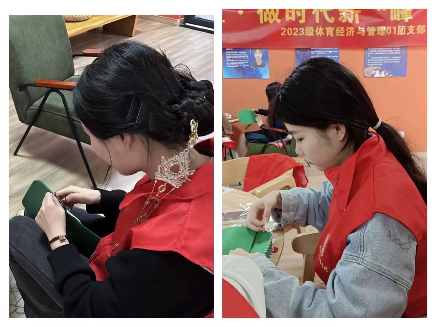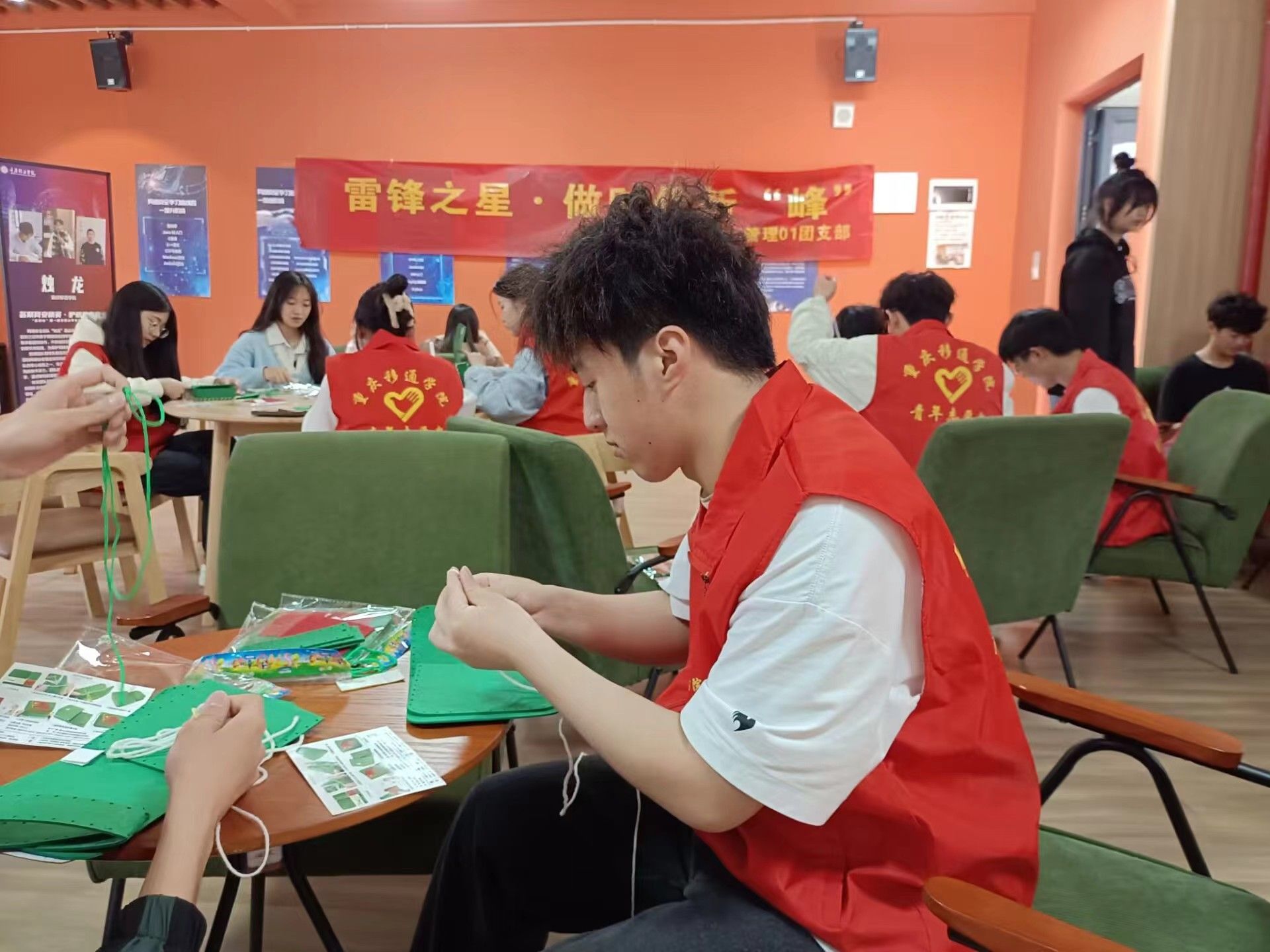 雷锋精神永驻心,前途似锦向未来。活动伊始,班长钟沁言介绍了此次活动的目的及内容,并向同学们讲解了雷锋精神的内涵,随后活动总组长刘紫钰对参与编织“雷锋包”的同学进行分组,同学们分别选出各自的组长,希望能让同学们在团队协作中互帮互助、共同成长,深入感受雷锋精神的内涵。