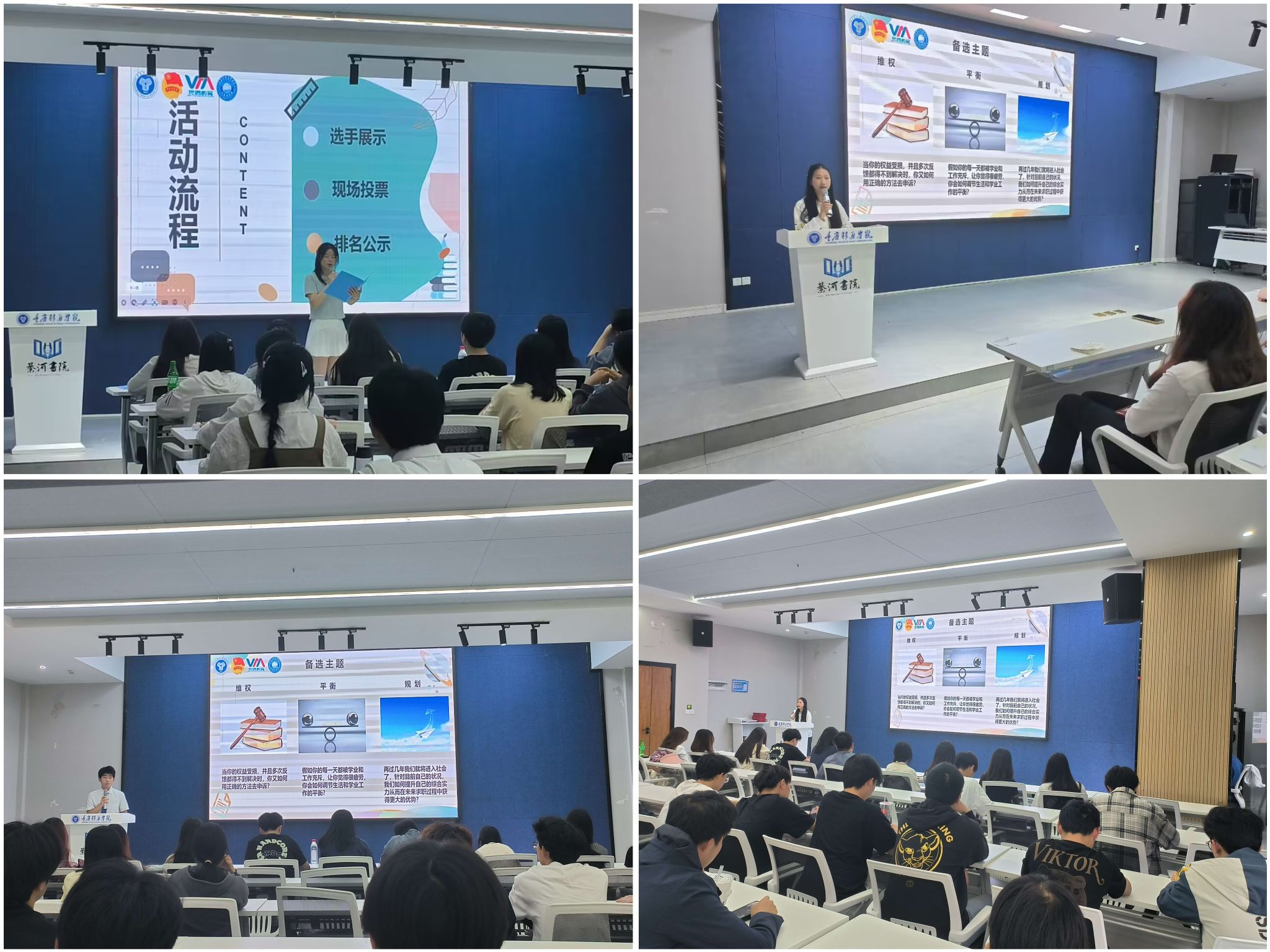 第三项活动是3月22日的大数据学院第二届麦克秀大赛,主题为“人生独白,诙谐开麦”。现场氛围活跃,每位同学都积极参与其中。大家通过诙谐幽默的方式表达自己的观点和想法。活动锻炼了大家的口才能力,营造一个积极向上、充满活力的校园文化氛围。这样的活动,不仅锻炼了学生的口头表达能力,也让他们更好地理解、掌握知识让知识运用到生活中去。