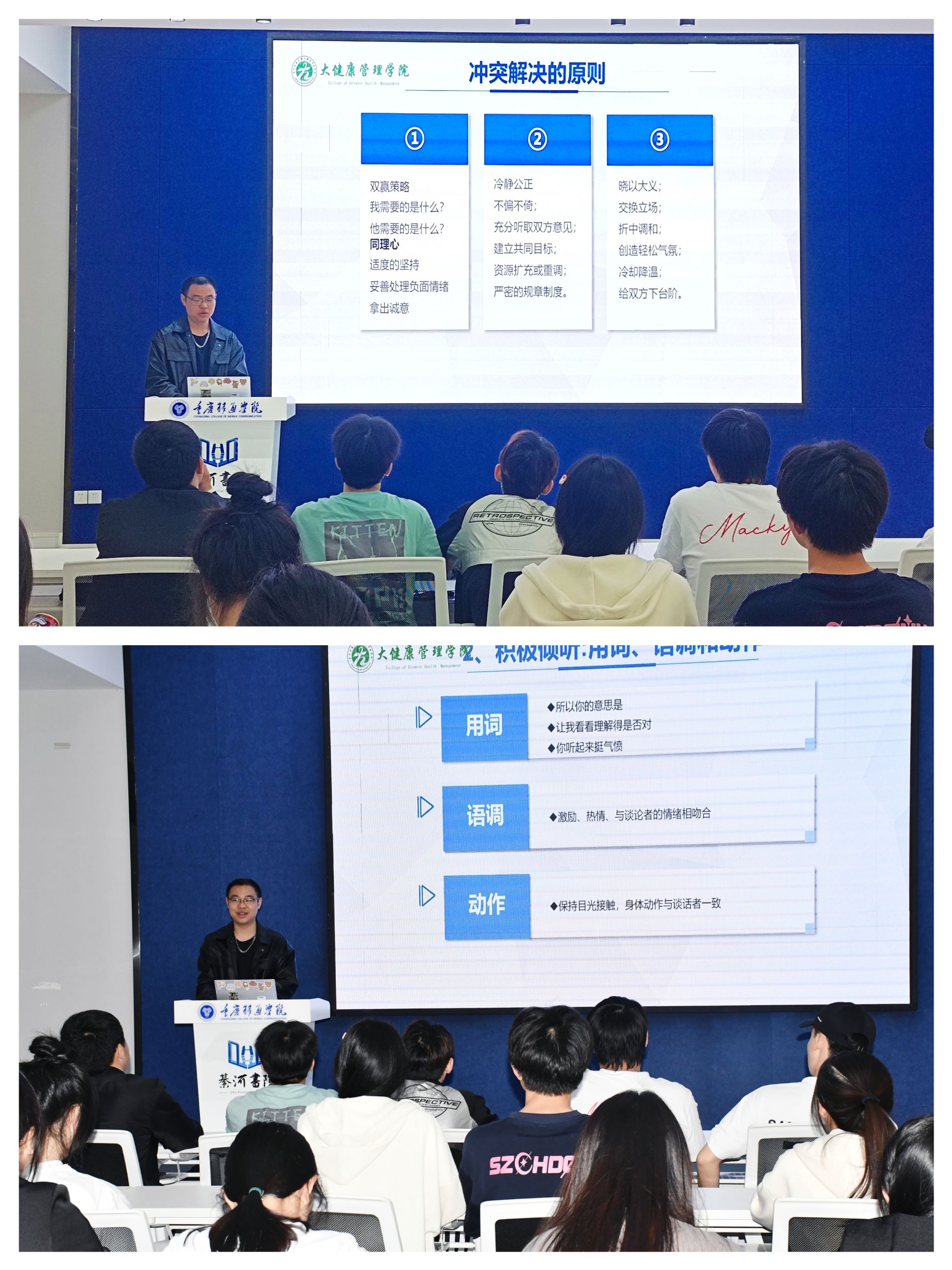 为提高青年团干部的沟通能力与沟通效率,更加充分了解有关领导力和沟通力方面的专业知识,促进青年团干部在日后组织工作的有序进行,大健康管理学院于2024年4月12日中午12点30分在綦河书院二号楼观涛·多功能报告厅开展了大健康管理学院“星火计划”第二季团干部专题理论培训第七期:“领导力与沟通技巧”。本次培训会有幸邀请到了大健康管理学院团总支学生副书记尹云晖学长为大家讲解有关领导力方面的知识与沟通技巧的重要性。