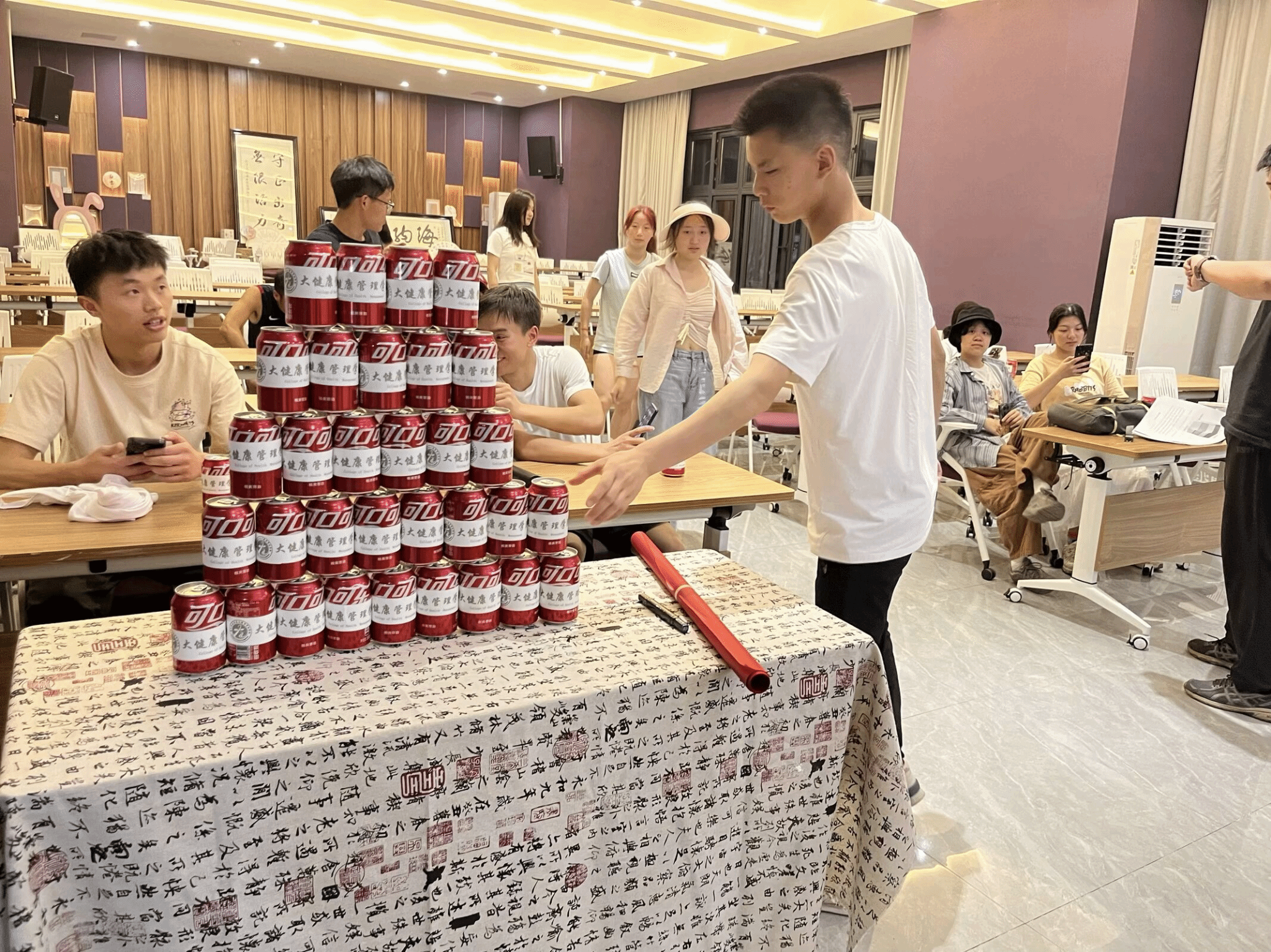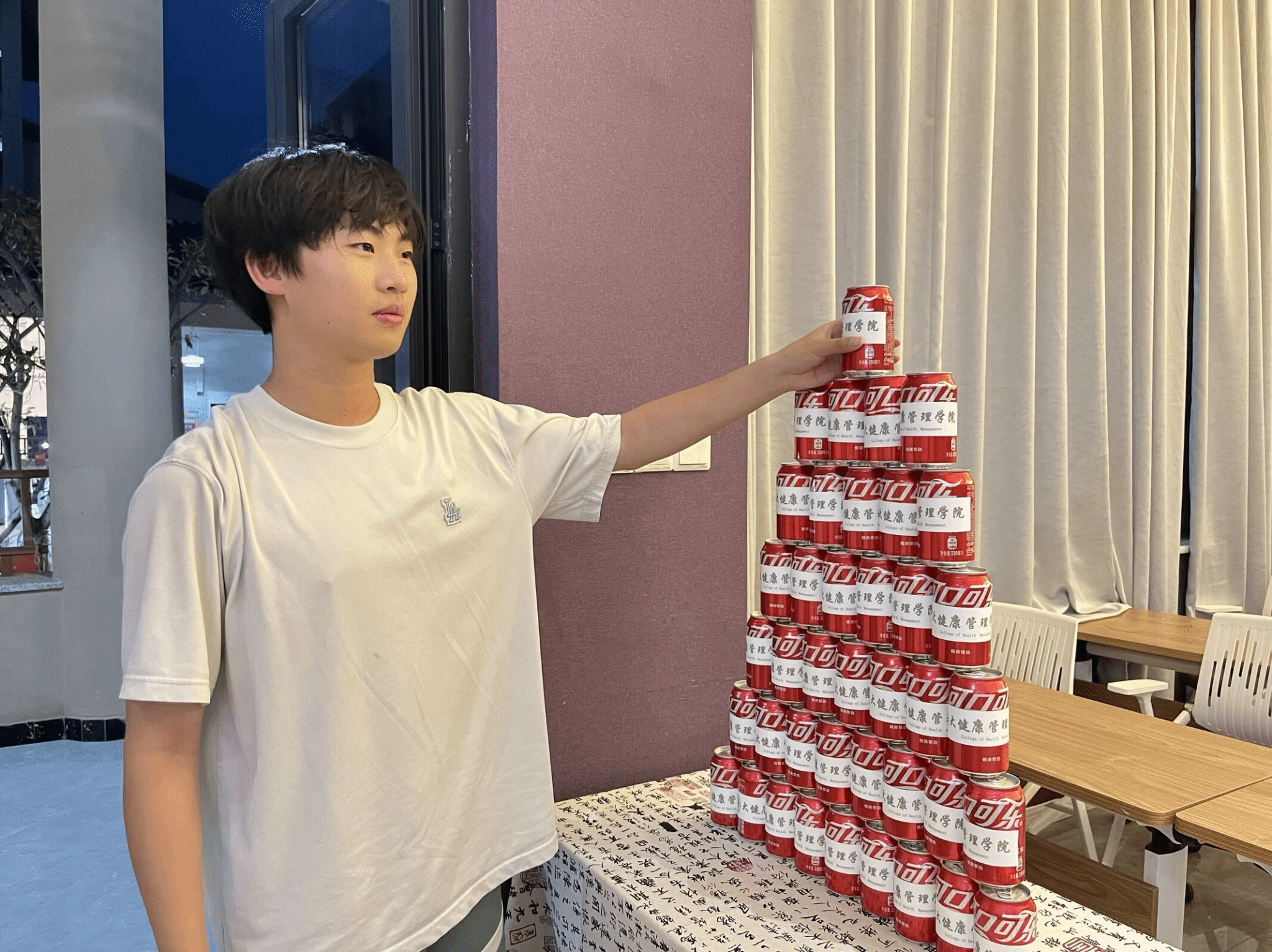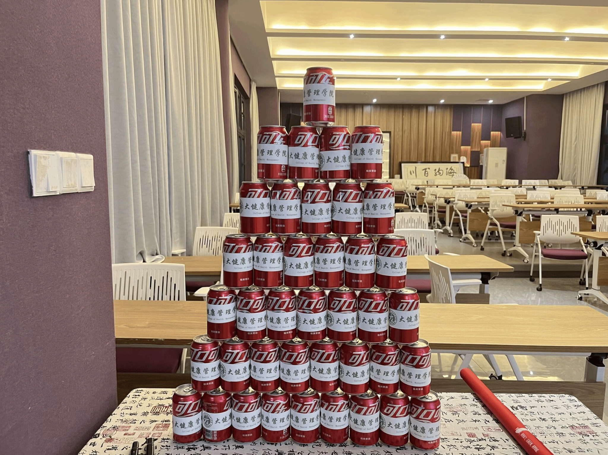 本次出征仪式以别样的签到形式开展,引入眼帘的便是由大健康管理学院体育协会精心准备“可乐塔”。红红火火的可乐塔寓意健管学子能在本次春季运动会中吉祥如意,奋发图强。随着出征仪式的正式开始。运动健儿有序进入会场,领取带有学院logo的“快乐水”。