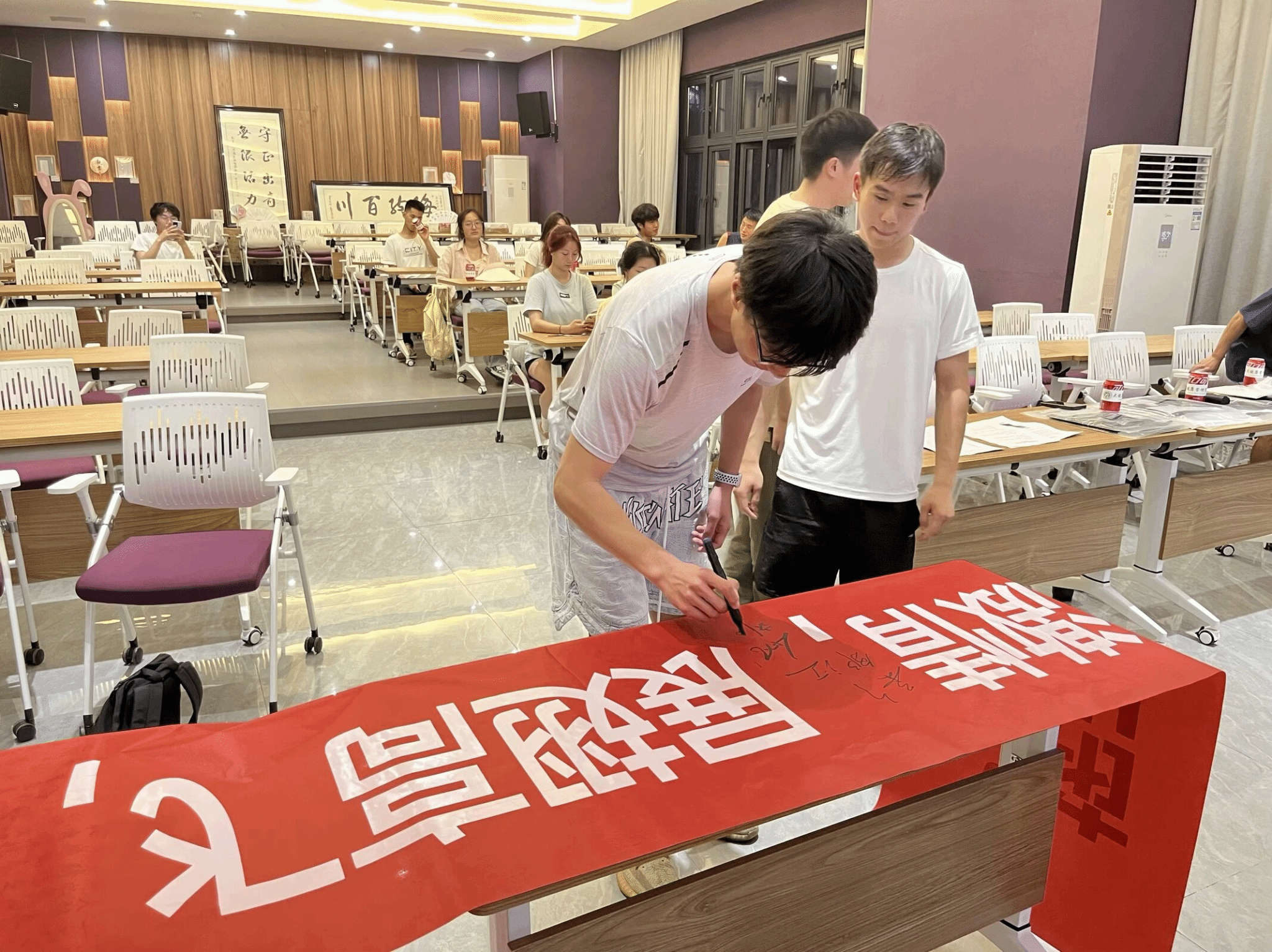 随着会议气氛达到高潮,健管学子们激情澎湃,一个个走到横幅前,在主持人的引导下有序地在横幅上签下了自己的名字。每一个签名都代表着他们对运动的热爱和对胜利的渴望。更是他们共同奋斗的目标和动力源泉。