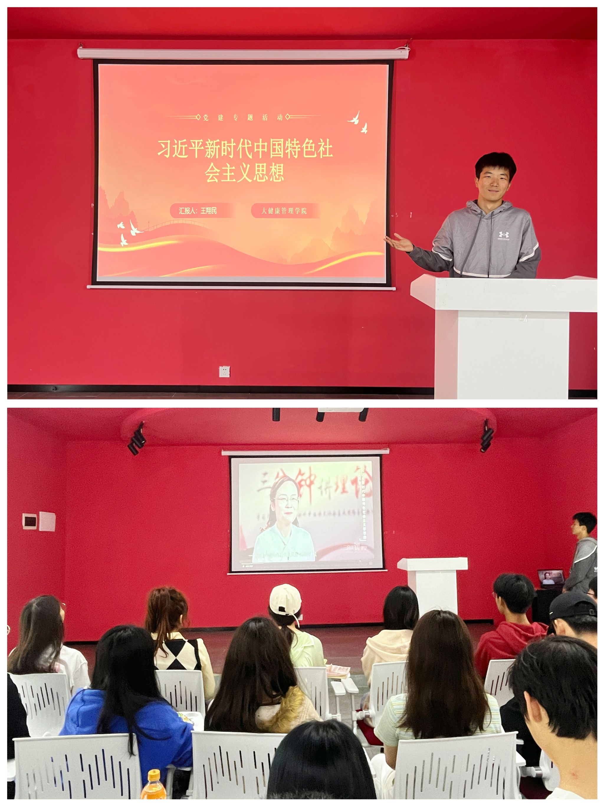 为加强大健康管理学院入党积极分子的思想政治教育,将习近平新时代中国特色社会主义思想渗透到入党积极分子的日常生活当中,起到思想引领的作用,同时推动学院党员队伍建设。大健康管理学院于2024年4月17日12:00在玉棠书院Talk king演讲中心开展“勤奋自强·坚定拼搏方向”——大健康管理学院第二期入党积极分子习近平新时代中国特色社会主义思想专题学习活动。本期活动由入党积极分子王翔民领学。活动内容包括观看习近平新时代中国特色社会主义思想视频,由入党积极分子代表进行讲解、现场提问、最后总结。
